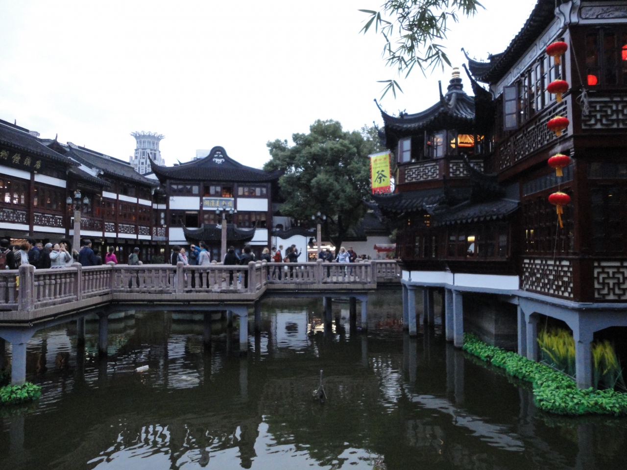 上海の新天地や外灘地区から歩いてすぐの所にあり、地元では有名な観光地になっています。建物の造りが廻りとは全く違っていて、4階だての建物は造りがお城みたいになっていて、名前に城が付く理由がわかりました。レストランやお土産屋、ファーストフード店などがひしめき合って並んでいます。中央には池があり、少し奥には噴水もあり、蓮が茂っています。白鳥もいていい雰囲気が出ています。池の畔に有名な中国料理レストランがあります。あのクリントン元大統領夫妻やいろいろな国の首脳や超有名人も来店しています。店内に来店したVIPの写真が展示されています。時間があれば、このレストランで食事してみたいと思いました。