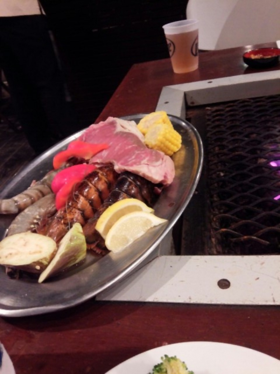 バーベキューは、かなり大きいお肉と、ロブスターがついてました。