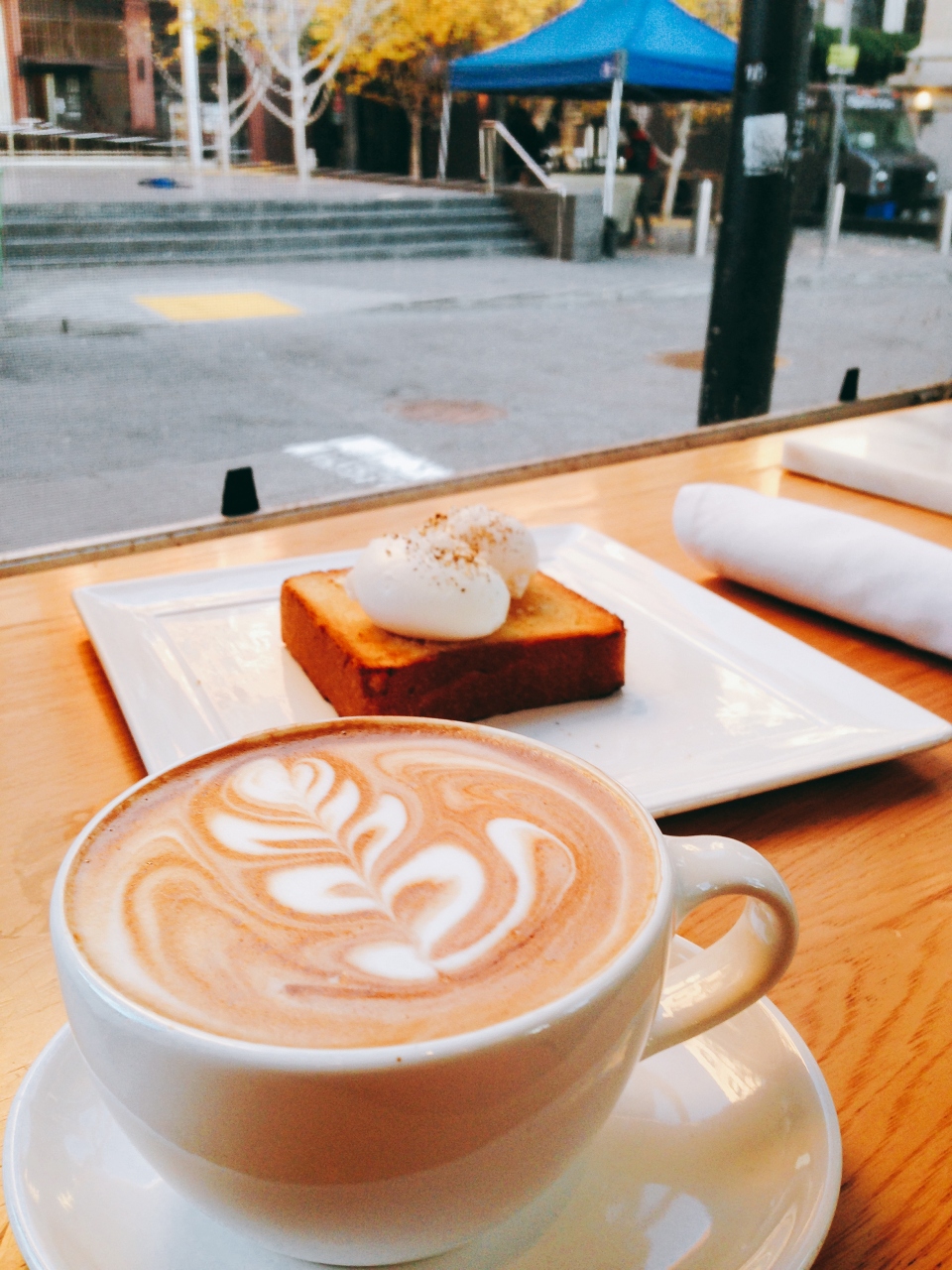 マーケットストリートの南側なのであまり治安のよくない場所にあります。早朝は歩いている人も少なく、すえた臭いが気になりました。お店はとてもおしゃれでスタッフのお兄さんがクールでカッコ良かった。椅子やテーブルもあるので簡単な食事もとれます。
