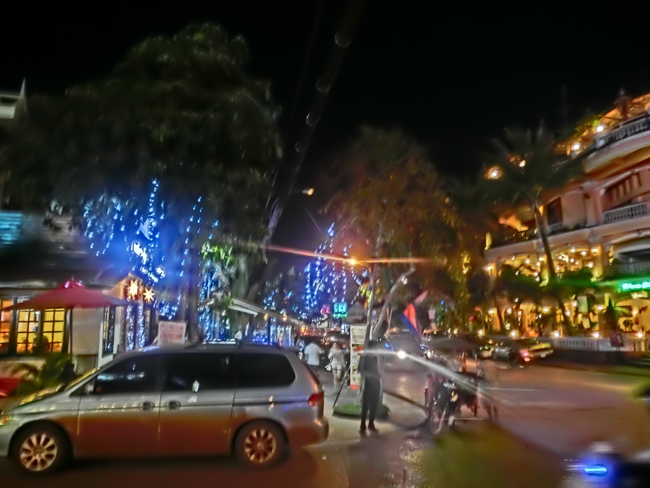 旧市街のホテルから徒歩でナイトマーケットへ。ほのぼのとしたシェムリアップの町並が夜市が拡張されてバンコクやパタヤのように変貌していてびっくり。1ドル餃子屋も無くなっていてピザ・パスタの店が激増していた。