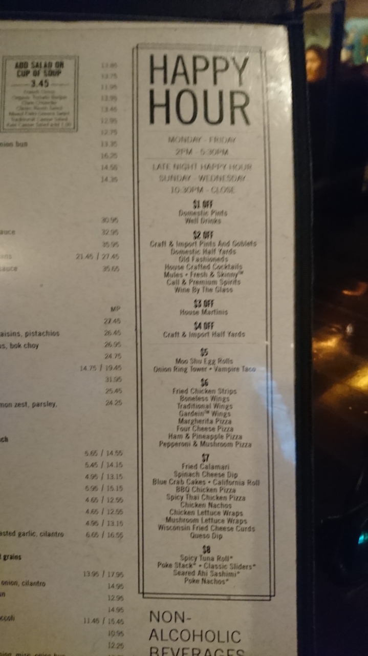 ハッピーアワーは曜日によって時間が違うので注意してください。