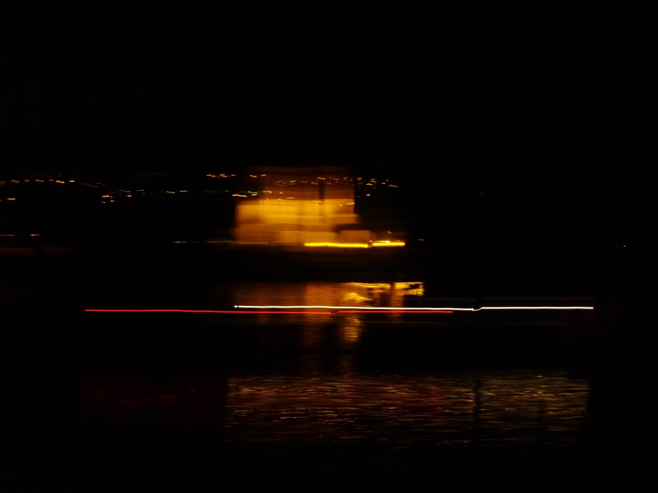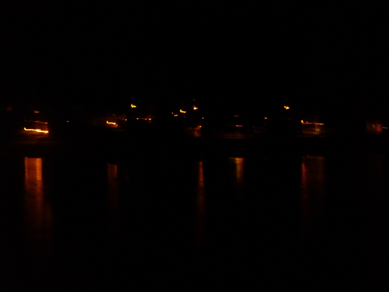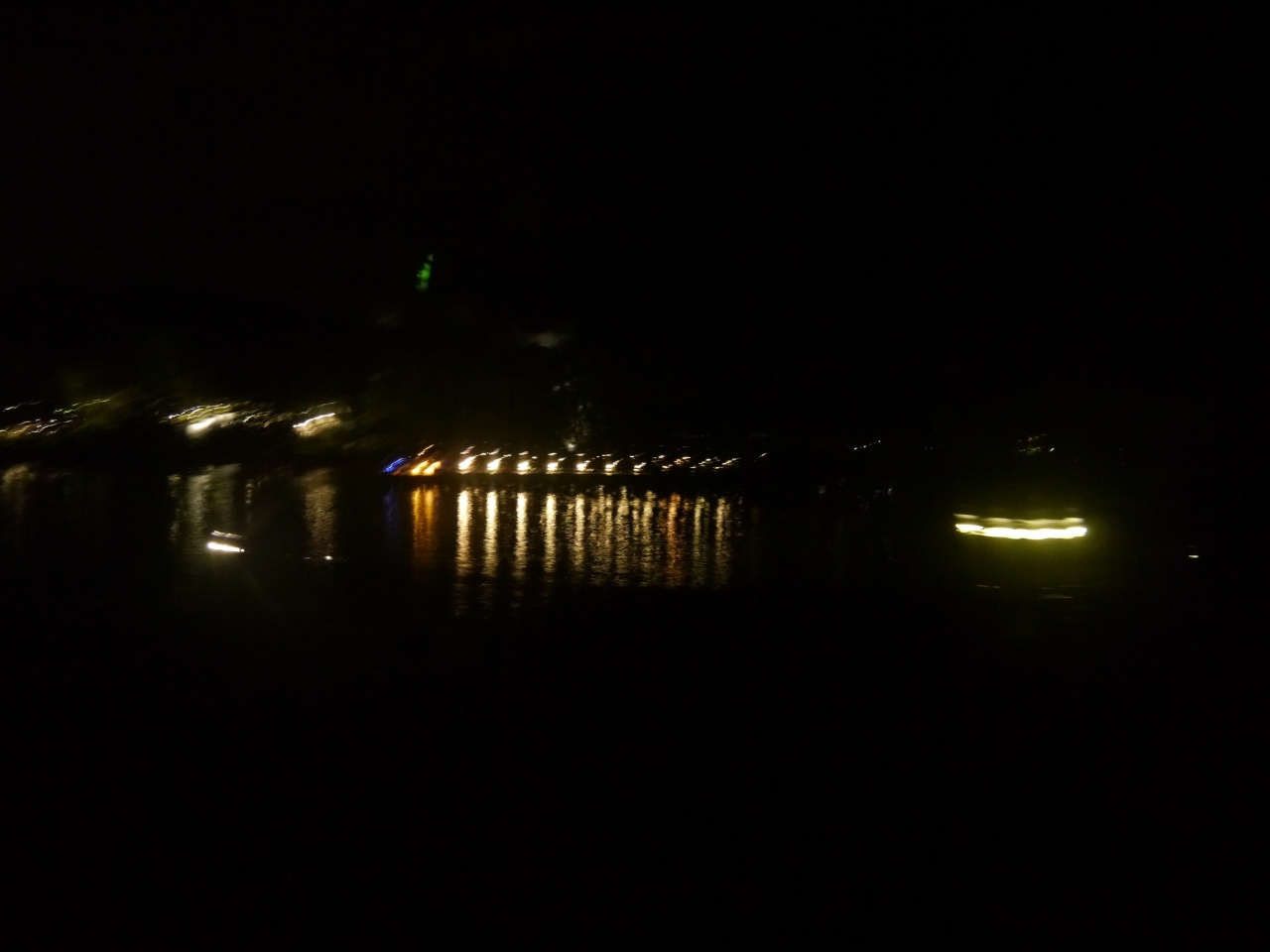 真夜中だったのですが、小型の貨物船が頻繁に航行しており、船が照らす灯りで川面の様子を確認することができました。