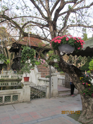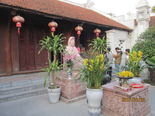 李朝の王様が世継ぎに恵まれていなかった頃、蓮の上で子供を抱いた観音菩薩の夢を見て待望の子供を授かったとされ王様が感謝の気持ちで建立したのがこの一柱寺とされています。一本柱で支えられ、池に浮かぶ蓮の花のような建築と形容される建物は一柱寺の観音堂です。
