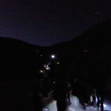登山口には、木で入口とわかるようにゲートが作られていました。ガイドさんは、スタスタとまるで平地を歩くかのように歩き、時々立ち止まってついてこれてるか人数確認。このスピードが早い!足の長い欧米人は平気でしょうが、ちびっ子日本人で普段特に運動らしい運動もしていない私には超ハイペース。途中リタイアする人もいたり、遅れる人もいたり、人数確認の度に人数は減っていきます。最初頑張ってこのハイペースについていきましたが、次第に遅れ始め、途中からは完全に自分のグループを見失ってしまいました。グループからはぐれても、たくさん観光客が歩いていますし、他のグループのガイドさんが気遣ってくれたりもしてと迷う心配は全くありませんでした。ただ、夜道は、先がどうなっているかわからず、ダラダラと続く坂道はかなり辛かったです。何とか登りきった!と思ったら、次は火口へ降りていきます。当然足元は、火山岩で一歩一歩次どこに足を置くか懐中電灯の光を頼りに確認しながら進まなくてはなりません。正直これをまた登るのかと思うとゾッとしました。