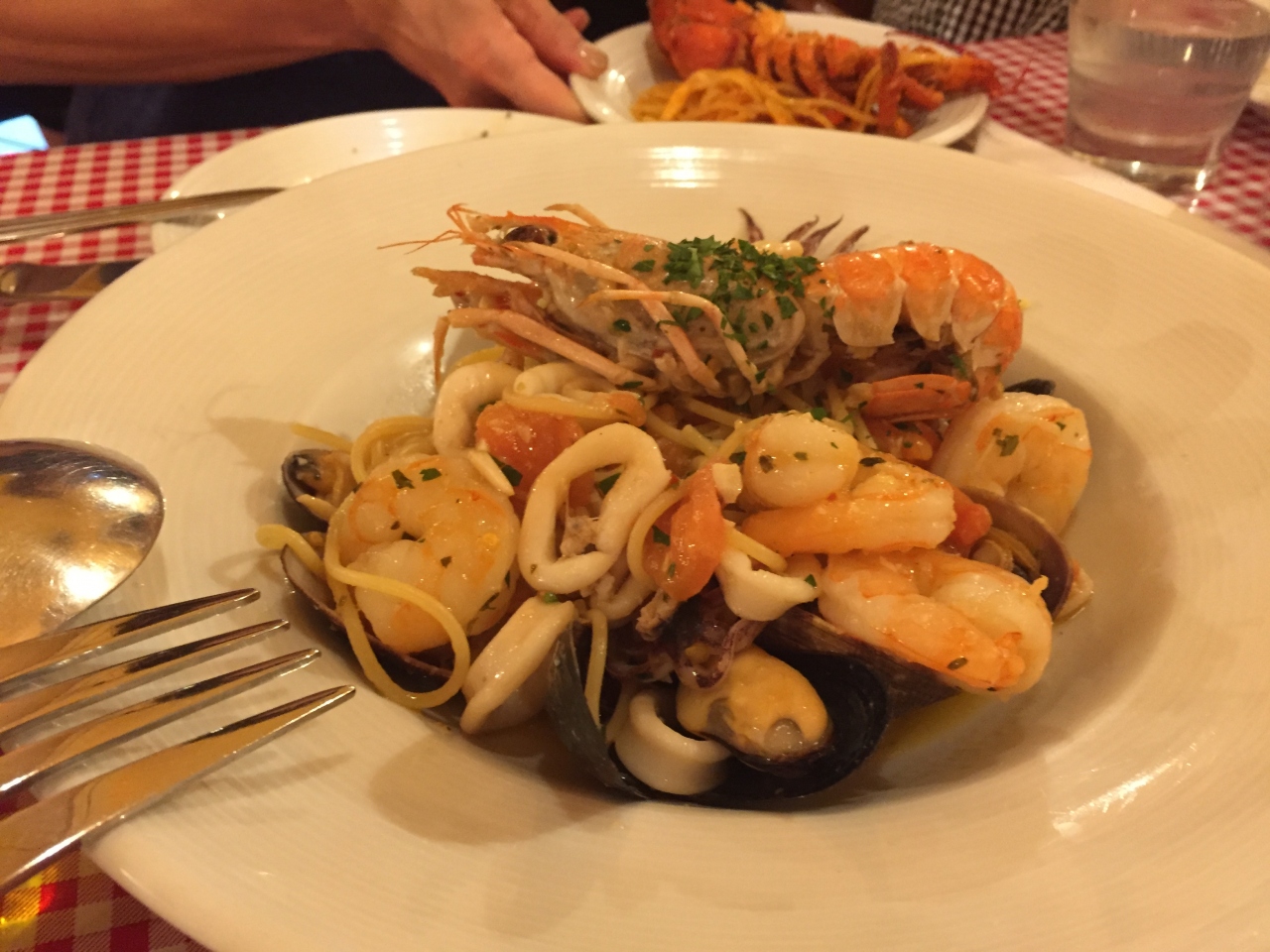 前菜、パスタ4種(うに、ロブスター、海鮮、イカ墨)、チーズのピザを注文しました。チーズのピザははちみつがついてきてかけて食べましたが そのままでもとても美味しかったです。パスタはやはりウニクリームパスタが一番おいしかったです。子供たちに塗り絵とクレヨンをくれたので待っている間助かりました。