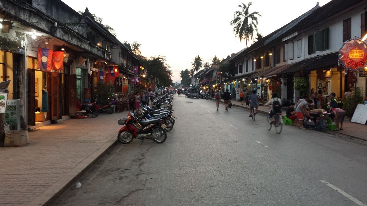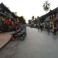 ルアンプラバンの一番の目抜き通りがこちら。最大の観光の目玉であるプーシー展望台と王宮博物館に挟まれた通りです。飲料や食料店、両替所、現地ツアー案内所などたくさんあるので街に到着したらますはこちらをぶらぶらしてみるのがお勧めです。