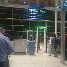 離発着はサテライトビル、メインターミナルへはエアロトレインで移動です。