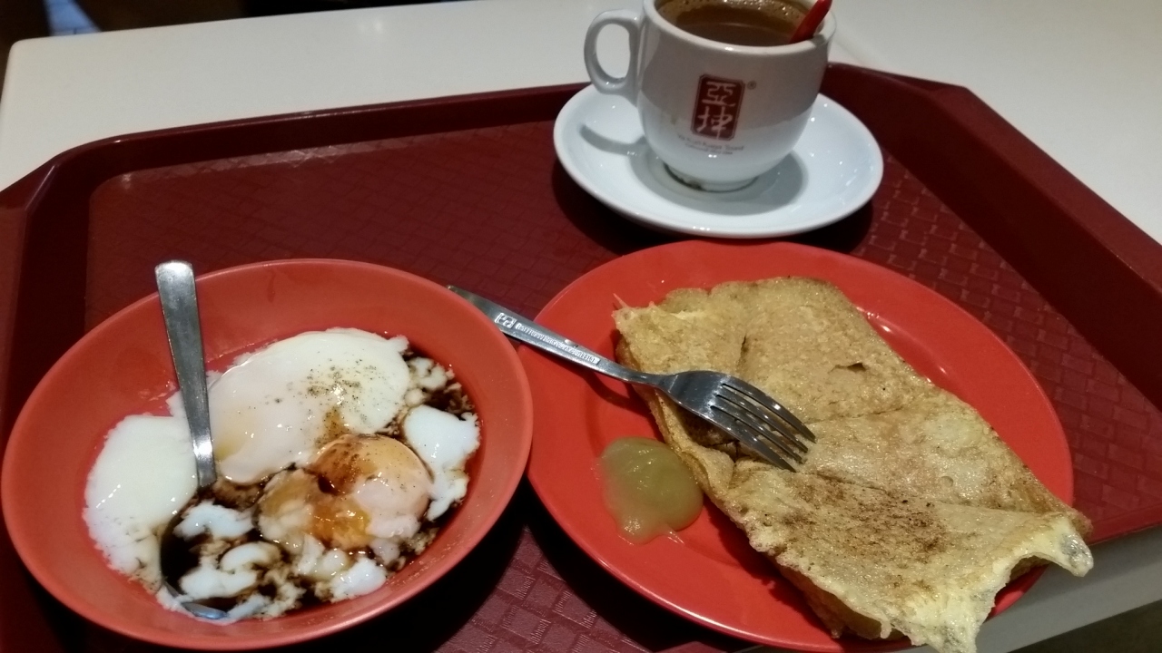 シンガポール滞在中にもなんかいか食べましたが、帰国直前でも頂きました、シンガポール名物のya kun kaya toastです。