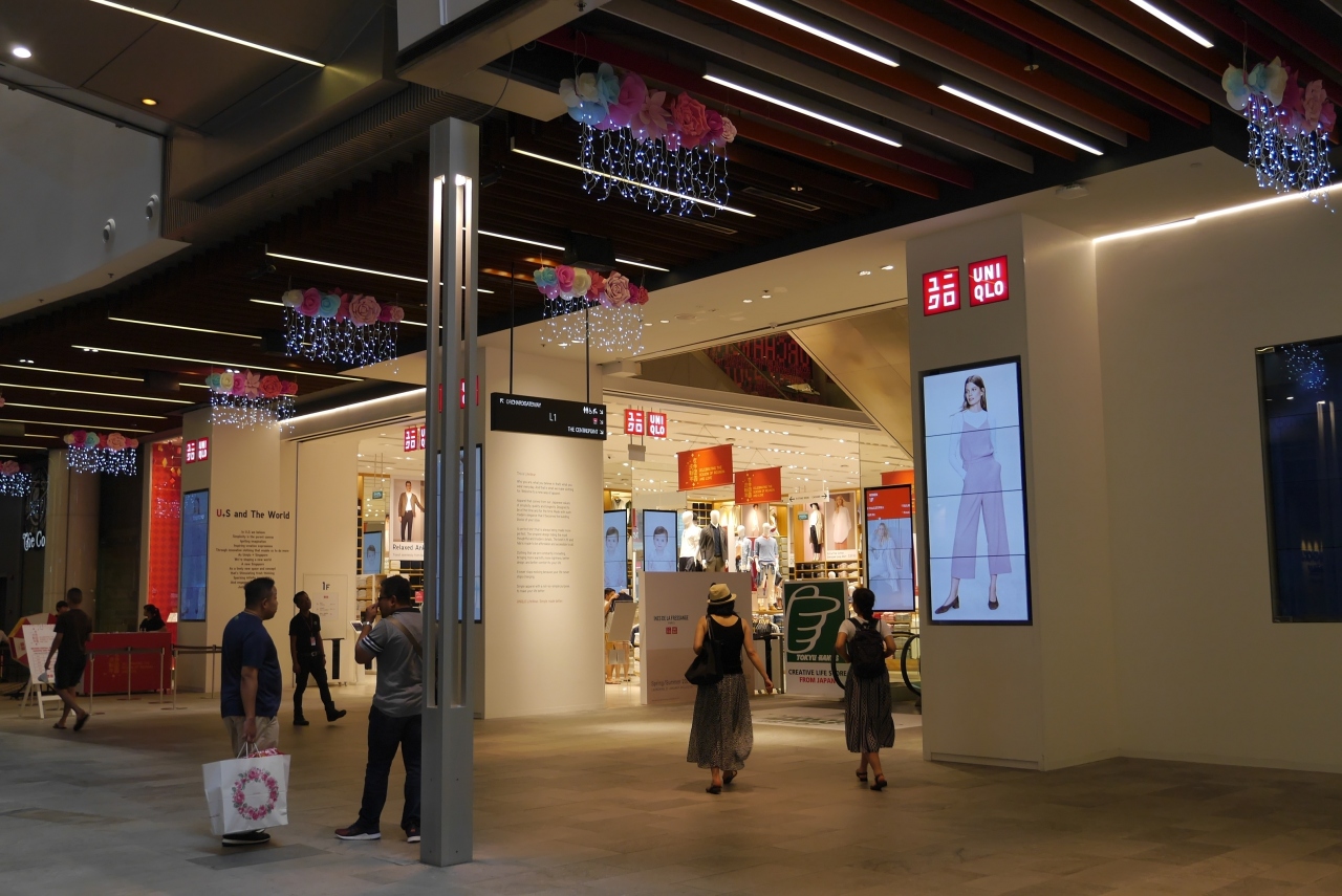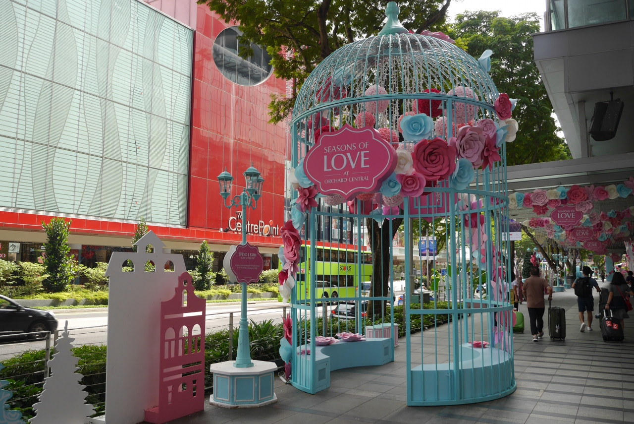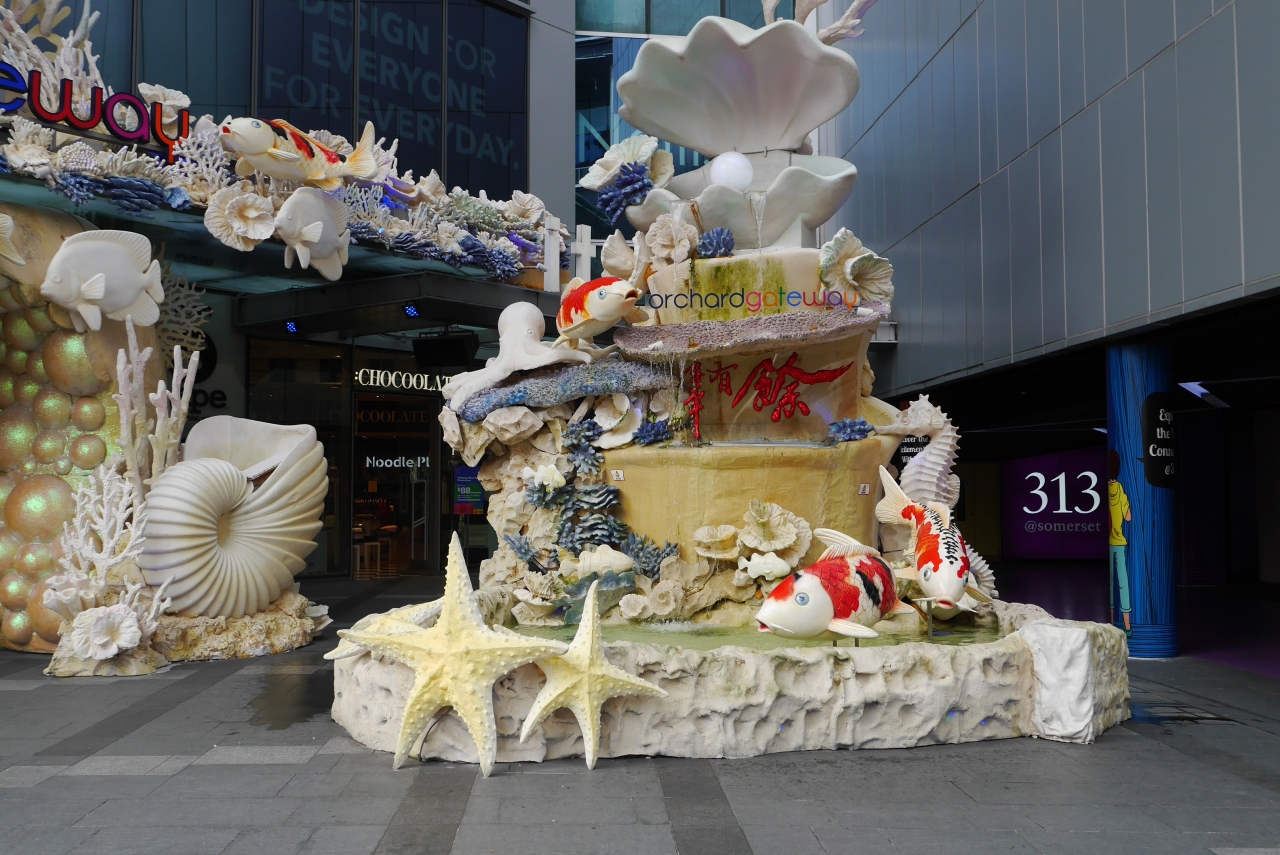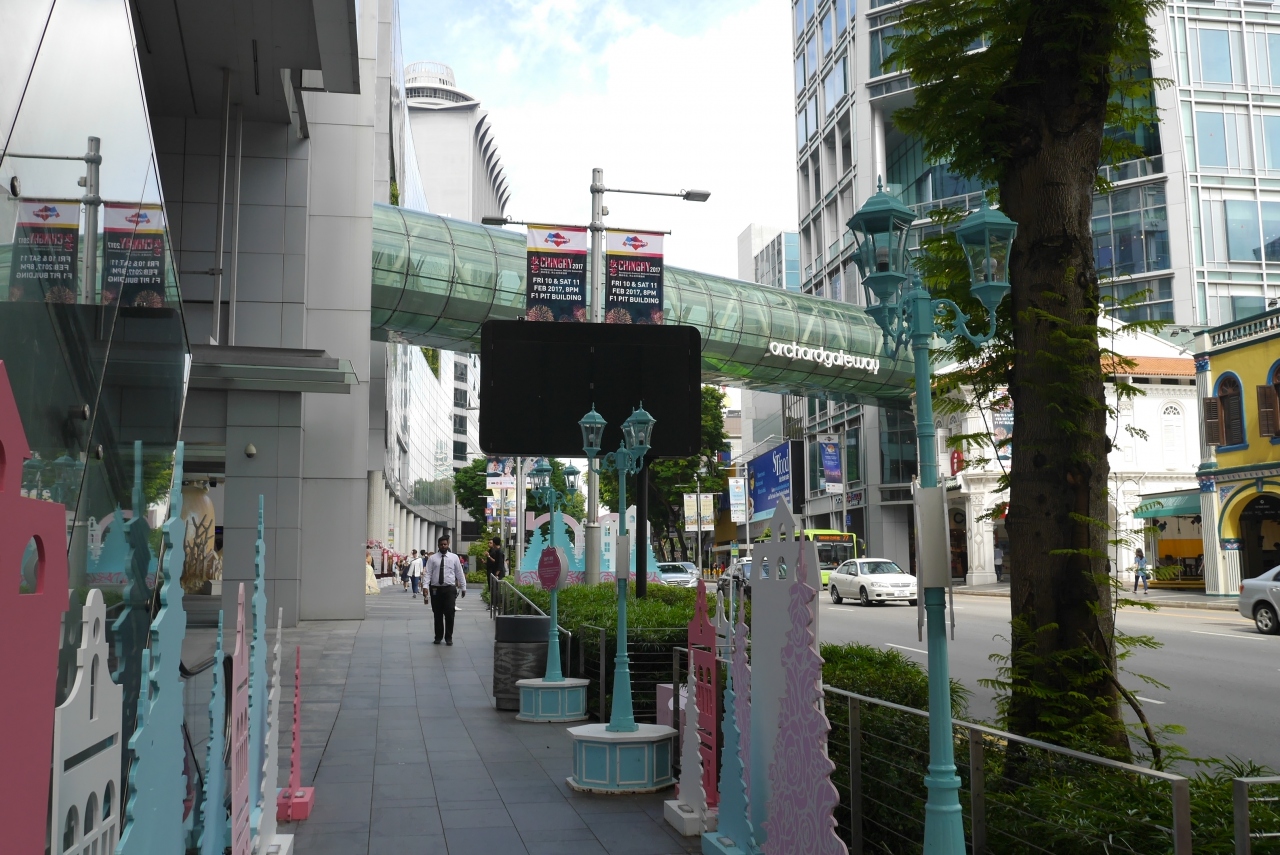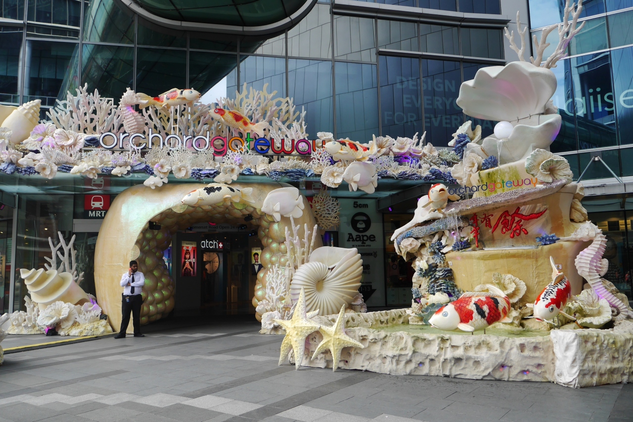 MRTサマセット駅に直結したショッピングモールです。オーチャードロード側の入口には海をモチーフにした飾り付けがされていました。春節用なのかとも思いますが、飾りの前では観光客が記念撮影していました。中は若者向けの店が多いですが、ユニクロもありました。二階にはオーチャードロードを渡る通路も見え、ガラス張の通路も楽しそうです。