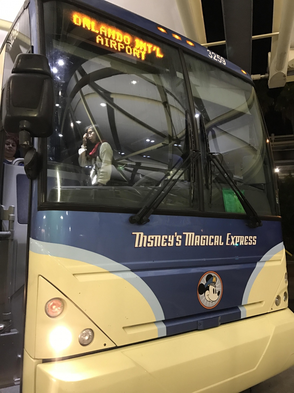 飛行機の遅延で真夜中になりましたが、カウンターのお兄さんは笑顔で対応してくれました。名前を言うとマジックバンドは?と聞かれましたが、海外からなのでフロント受け渡しですというと、予約の紙を印刷してくれて、各ホテル行きのバスに並ぶように言われます。待ってる間もディズニー説明ビデオが流れてますので、退屈しません。