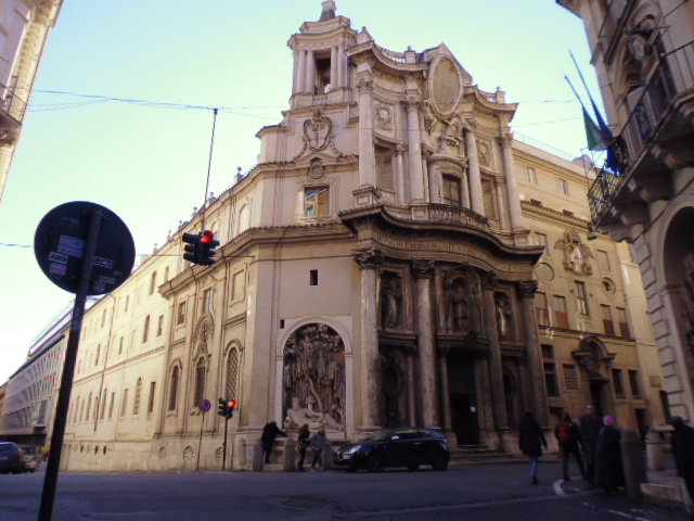 スペイン階段からバルベリーニ広場を過ぎ、テルミニ駅方面を散策していると、道路の四つ角に歴史的な彫刻と水場があります。