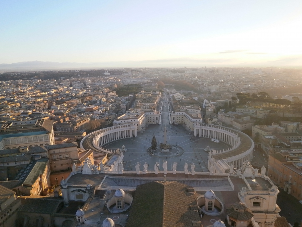 そんなキツイ思いをして感動する眺めがクーポラの展望台からのバチカンとローマの眺めです。特に朝の風景は空気が澄んでいるのできれいでした。