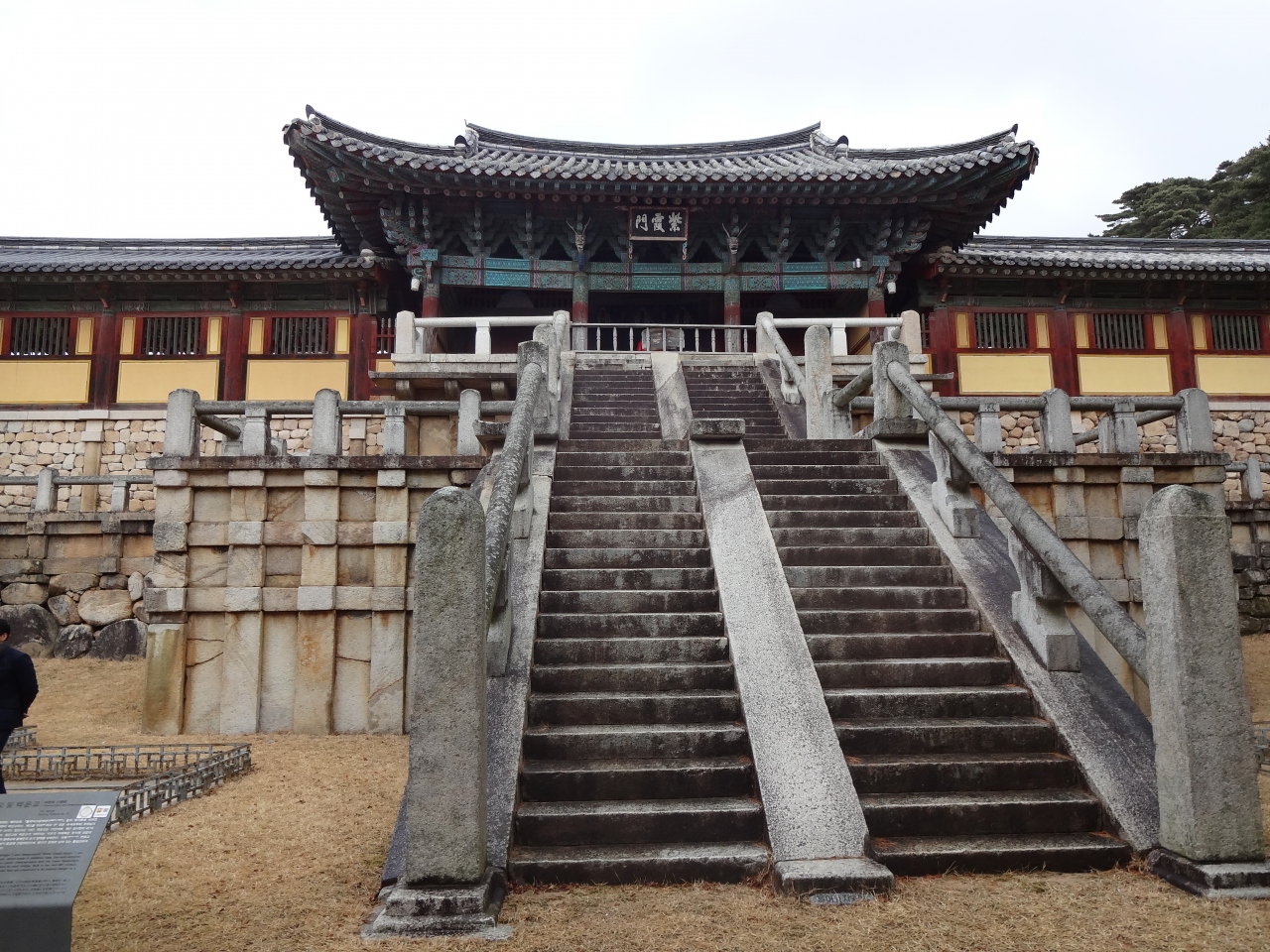 新慶州駅からバスで直接行きました。バス停に時刻表らしいものがあり、かなり待つ必要がありましたが、なぜかすぐに来たので乗りました。休日は増便しているのかもしれません。慶州中心部へのバスは頻発しており、一度中心部にでてから行くこともできます。お寺自体は特に目新しいところはなく、世界遺産ではあるものの、日本基準で考えるとたいしたことはありません。