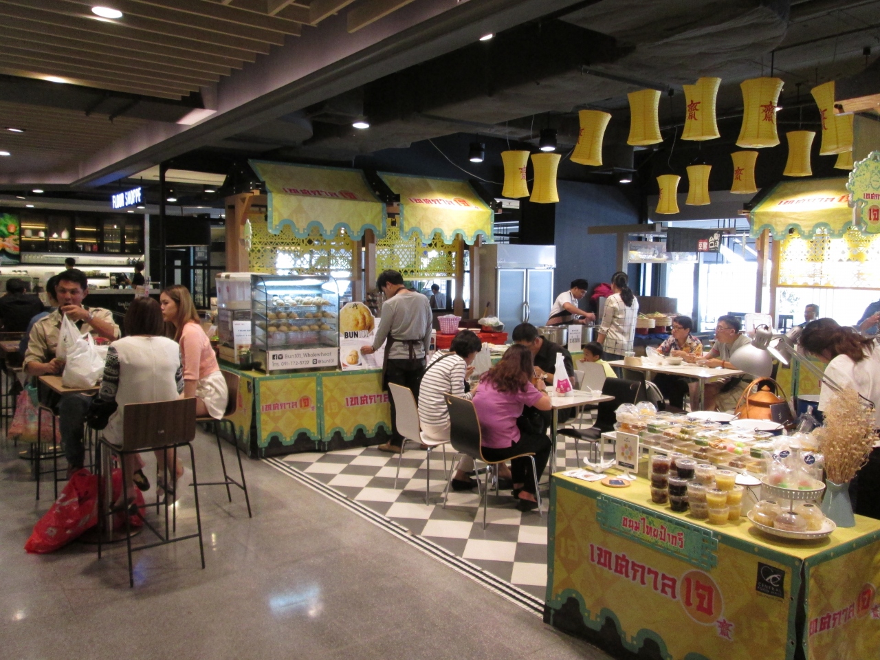 セントラルチットロムの1階にある高級スーパーマーケットに臨時のイートインスペースができていました。こちらのスーパーで購入した軽食、軽食、ドリンクを飲食するスタイルが人気のようで、椅子がほぼ埋まっていました。