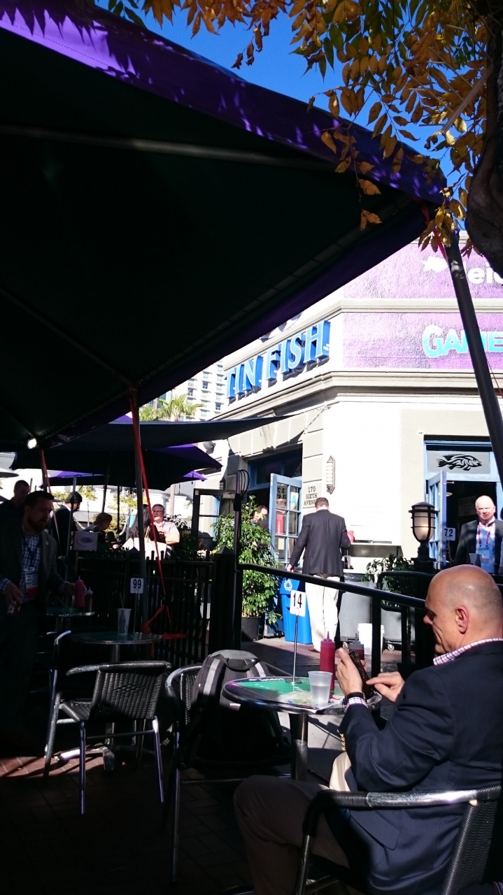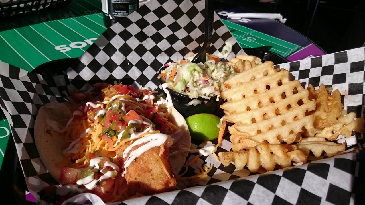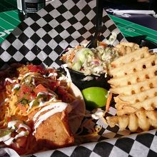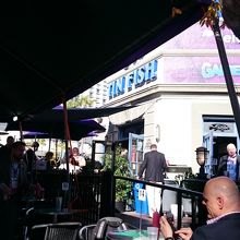サンディエゴ名物の魚のフライの入ったタコスが食べられるお店。コンベンションセンターの道路を挟んだ目の前、サンディエゴトロリーのグリーンラインのガスランプ・クォーター駅横にあります。お店の中にもテーブルはありますが、気候の良い土地柄なのか外のテーブル席で食べている人がほとんどです。レジで注文して、ドリンクはカップをもらいセルフで、タコスは番号札をもらい出来上がると店員さんが持ってきてくれます。チップ社会のアメリカでは珍しく、チップ不要です。サンディエゴのタコスは、肉ではなくフィッシュフライが入っているのが特徴で、あっさりしていますが、ボリュームもあり美味。マクドのフィレオフィッシュがタコスになったと考えるのがいいかもしれません。タコス1個(ポテトフライ、コールスロー入り。飲み物別)で7.95ドル、2個入りが11.95ドルなので、やや高い気もしますが、タコス1個でも結構なボリュームなので納得できます。また行きたいお店です。