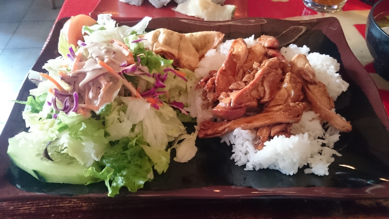 ブロードウェイにあるリーズナブルに和食が食べられるお店。お客さんはローカルがメイン。ランチは10ドル以下のプレートがあり、結構混雑している。店内はなんとなく和風テイストではありますが、カスタマイズされていて、日本人には滑稽に。男山やにごり酒の瓶が並んでおり、一生懸命日本テイストを醸し出そうとしているのかも。なぜか、醤油皿やレンゲが中華風。「Sushi」も勿論ありますが、Teriyaki、Tempuraをはじめいろいろなメニューがあるようです。お店に入るとTATOOの入った少し怖めのお兄さんに出迎えられる。ランチに行ったので「照り焼きチキンプレート」と、せっかくなので「カリフォルニアロール」をオーダー。最初に味噌スープがでてきました。具は、天かすとネギ。食べられなくはないですが、味噌が薄い。これはヤバイかもと心配になる。しかし、カリフォルニアロールはいたってノーマル。チキンプレートは、揚げ餃子もついている。甘ダレのチキンは結構食べられた。ご飯もカリフォルニア米のようで美味でした。いやいや結構美味かも。「HOKKAIDO」というビールがあり飲んでみましたが、なぜ、北海道なのか不明。単なるドラフトビールでした。テイクアウトもやっているようです。「寿司」というよりは定食メインの若干フュージョン気味の和食屋さんです。価格もリーズナブルなので、本格的な日本食でなくてもいい時は使えるかも。