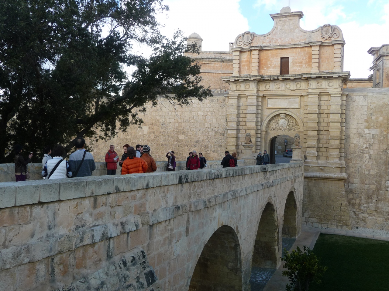 小ぶりであるが装飾豊かな、堂々たる街に入る城門。堅牢な構えである。