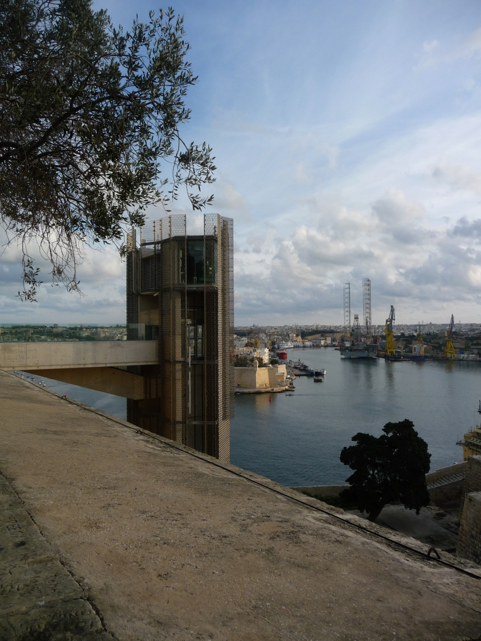 アッパー・バラッカ・ガーデンの南の隅に設置された、エレベーター。海岸通りと街中心部とは、高低差がかなりあるので、階段・坂を利用しての上り下りは、かなりしんどい。このエレベーター利用がお勧め。