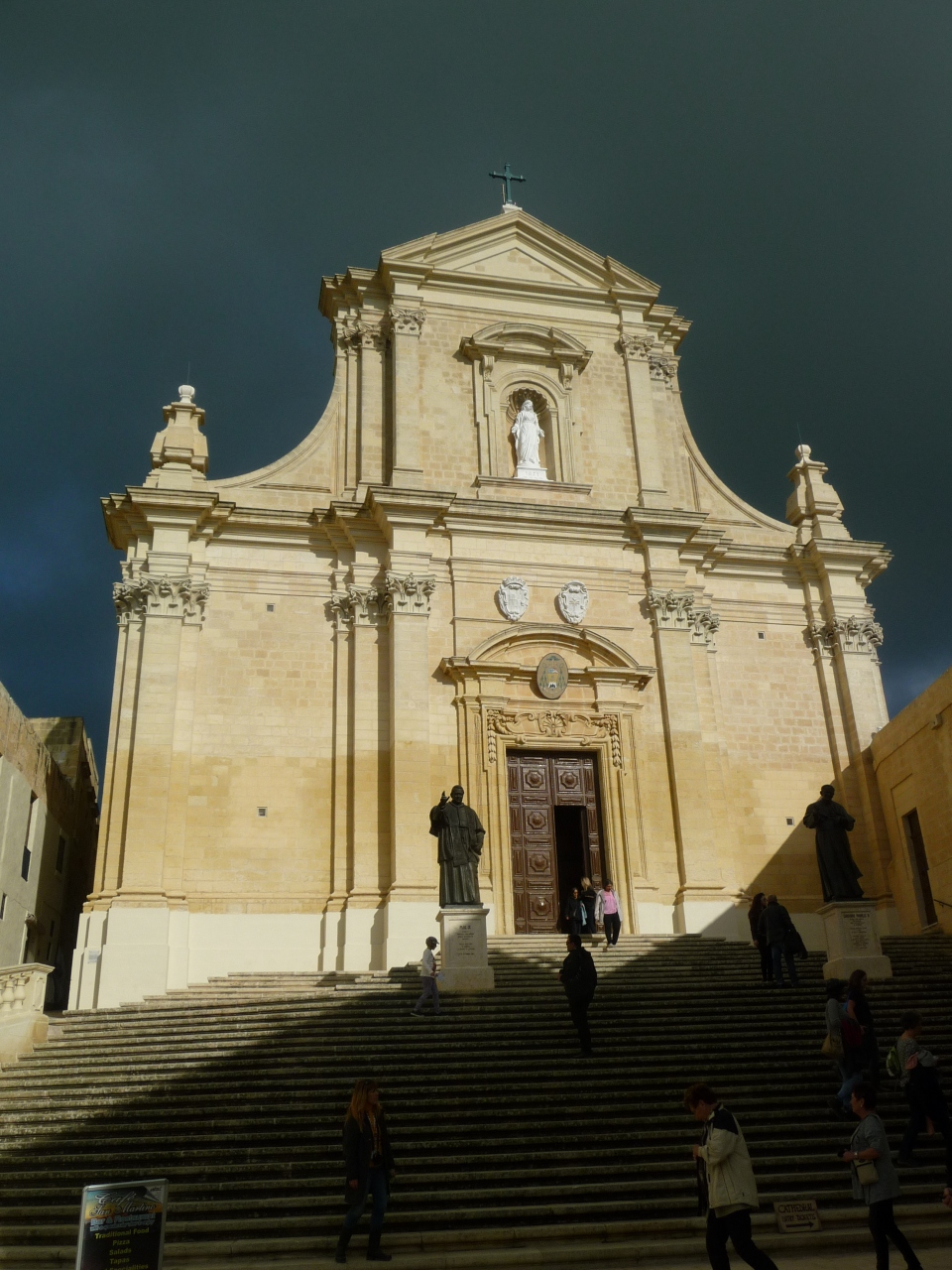 ファザードも下から続く幅広い階段により重厚感が増して、全体としてゴゾ島を代表する大聖堂として、貫録十分。立派です。
