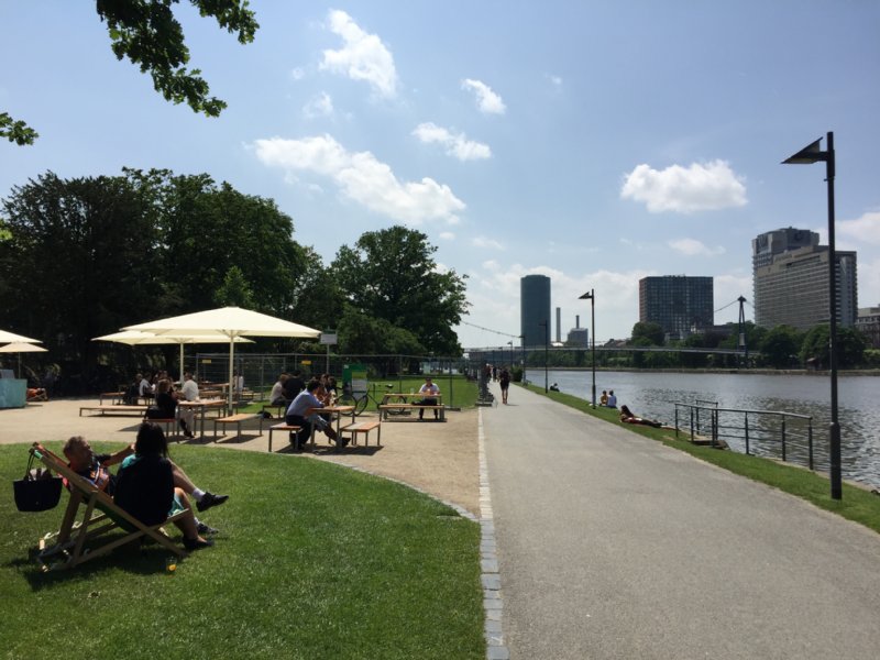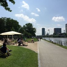 マイン川の両岸には遊歩道が整備されています。中央駅からシュテーデル美術館を経て、レーマー広場へ戻る途中にこの道を散策しました。