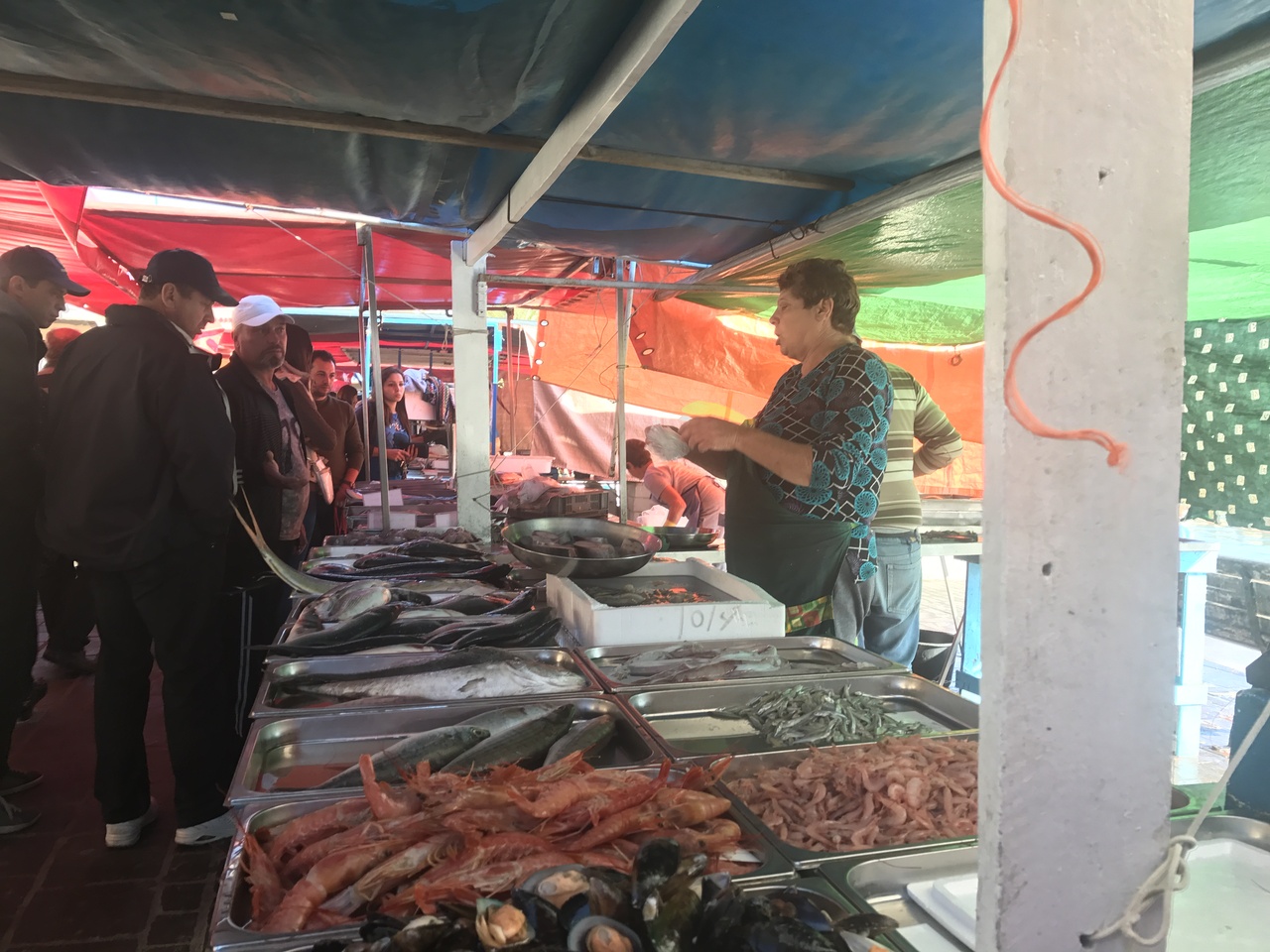 海沿いに船が並び 野菜や魚 お土産もの レースが揃っています。マグネットなどのお土産はスリーマのほうが種類が多いですが、レース類はたくさんあるのでここで購入されるのをオススメです。しかし行きや帰りのバスの時間を先にチェックされるほうがいいです。帰りのバスがなかなかきませんでした。