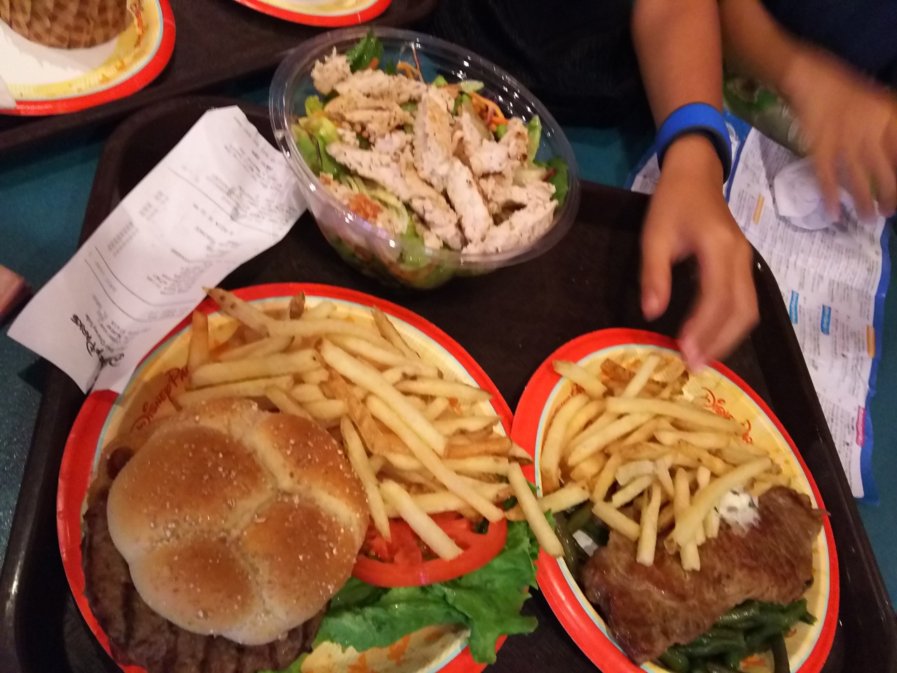 ハリウッドスタジオにあるレストランで、ハンバーガーとステーキを食べました。