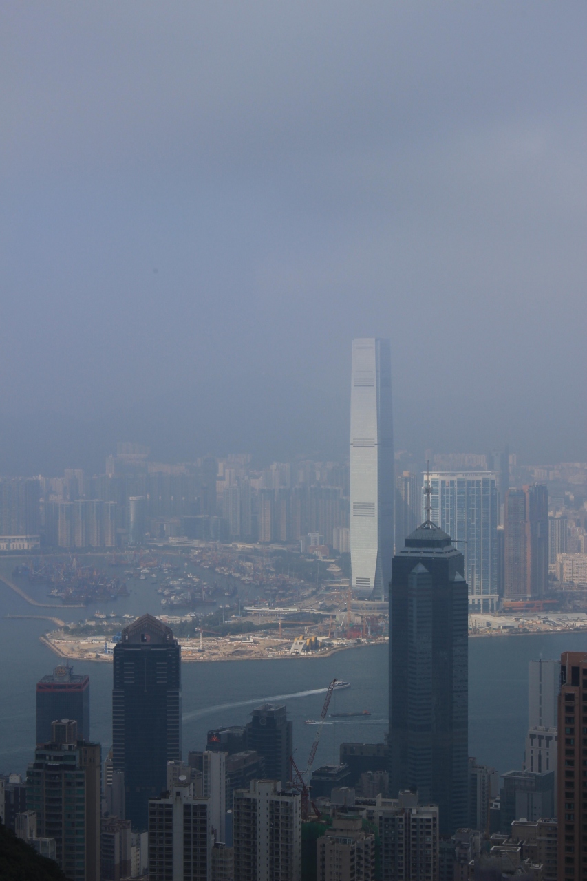 ピークトラムで頂上まで登ります。ピークタワーから外へ出られるようになっており、香港の街の景色を眺めることができます。