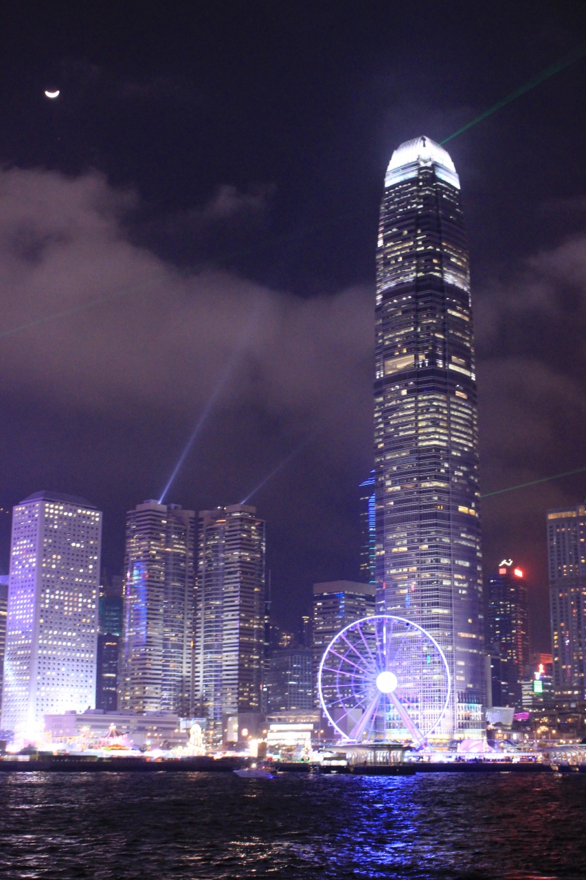 日本からオプショナルツアーを申込み、クルーズ船に乗って、シンフォニーオブライツを見ました。夜景はきれいでしたが、光のショーは思ったほど派手な感じはなく、シンガポールのマリーナベイサンズのショーのほうが華やかに感じました。