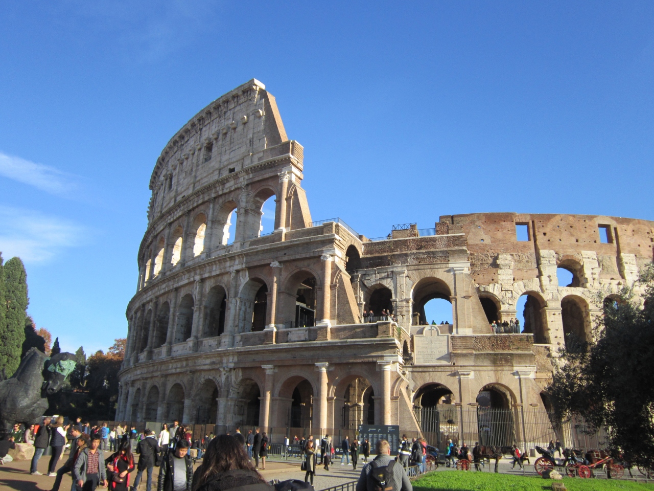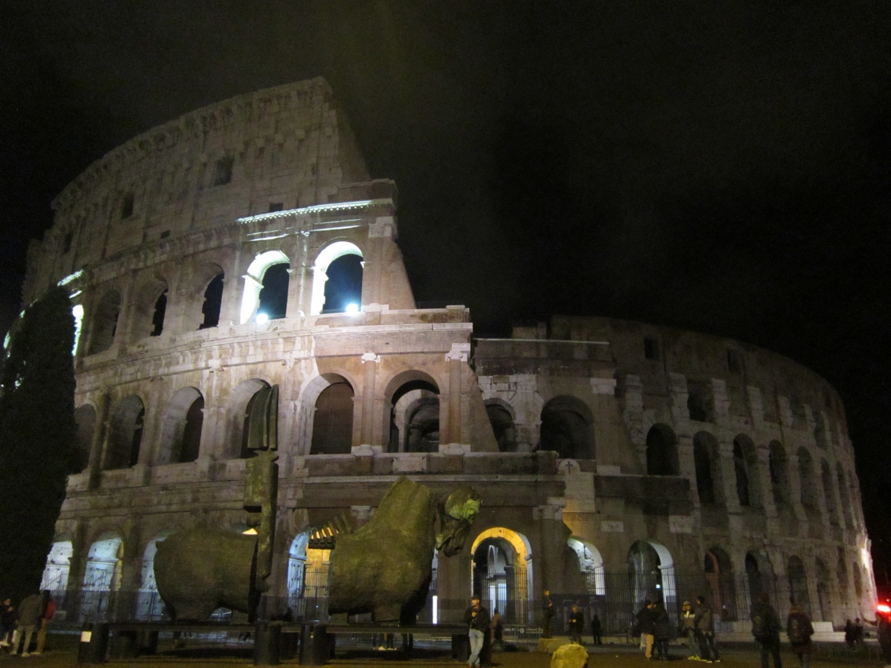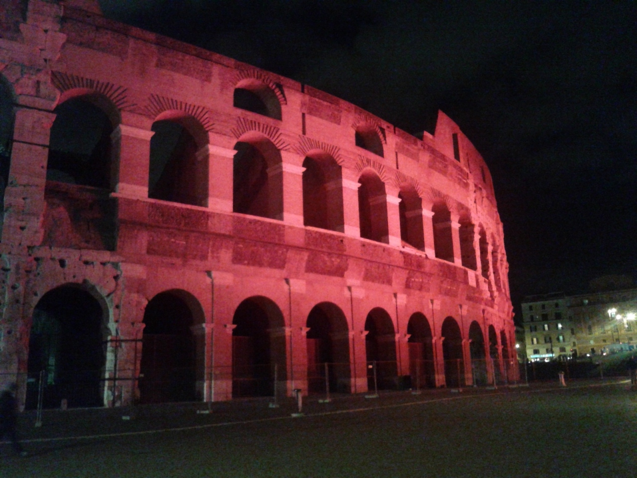 昼は堂々とした感じですが、夜は赤くライトアップされていたせいか剣闘士たちの悲しみのような雰囲気も感じました。