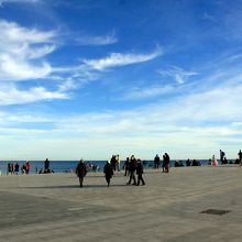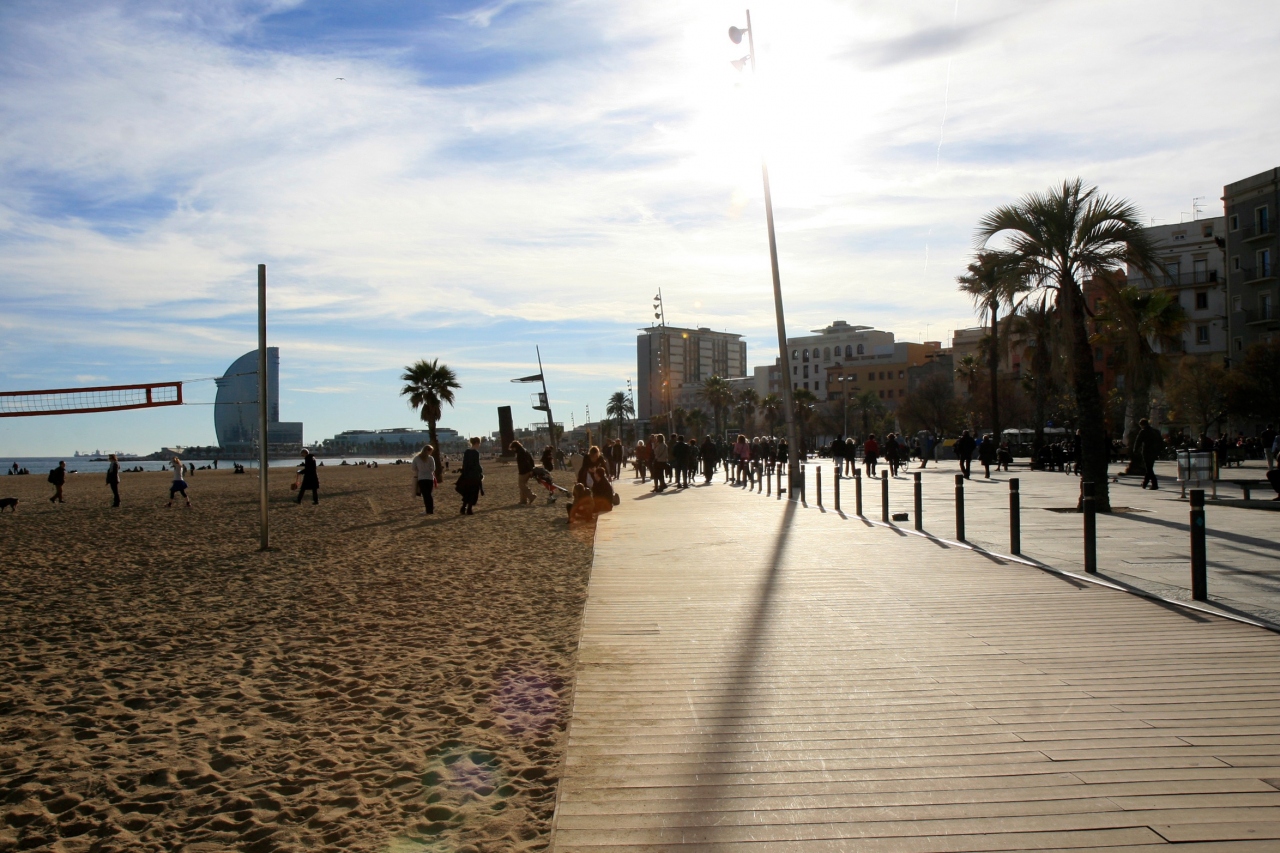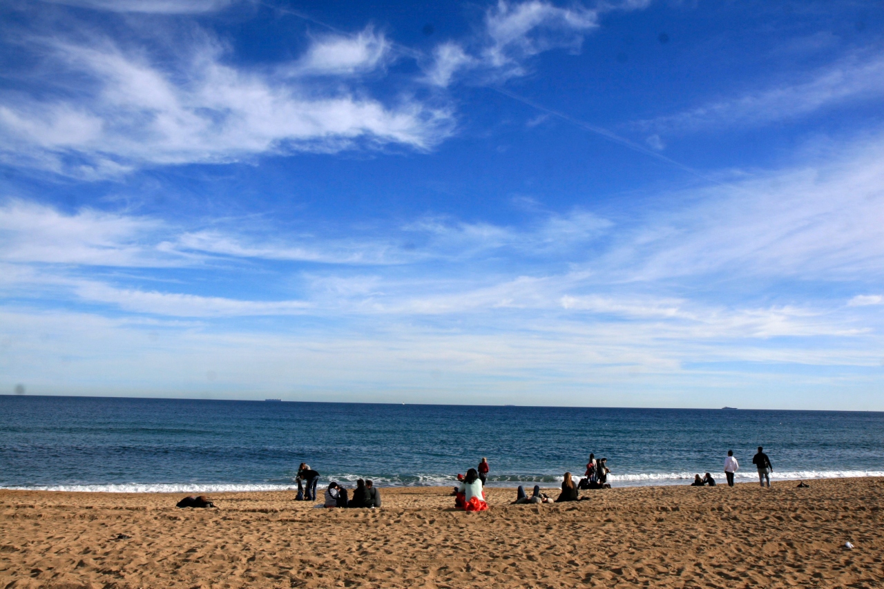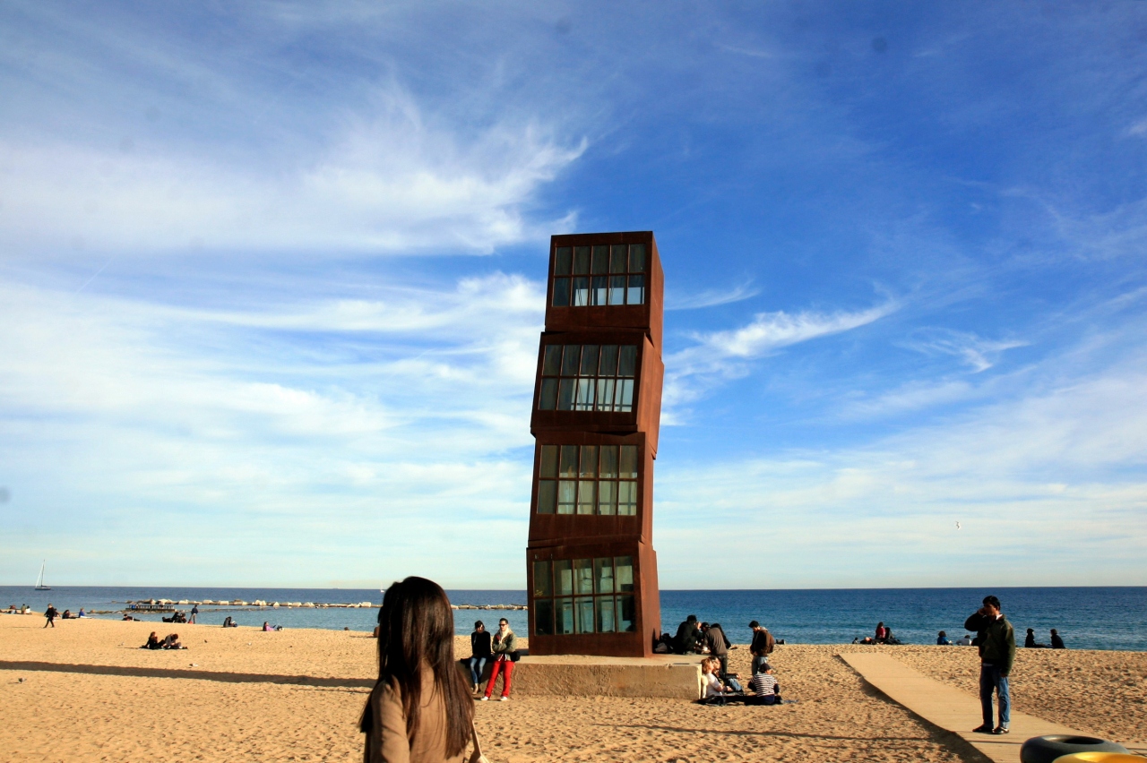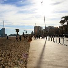 天気が良かったので空が広い方へ、潮風の匂いのする方へ歩いていったら、たどり着いたのがバルセロネータと呼ばれる海浜地区でした。ジョアン・デ・ボルボ通りの美味しそうな魚介類のレストランやビールの看板を見つつw、さらにヨットハーバーを超えて歩いていくと、大きく開けたビーチにあたりました。これが地中海かな?この先はアフリカかな?などと想像しつつ、冬なのに泳いでいる人、砂のアーティスト、筋トレに励む人、語らう人々…皆、思い思いの海を満喫しているのがなんだか自由な気がして、数時間波を見ながらのんびり過ごせました。