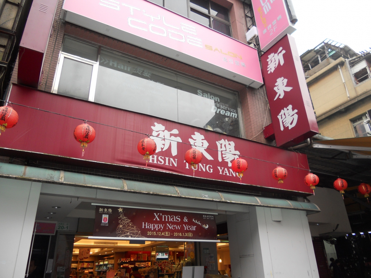 台北市内でありらこちらにある、オリジナルのパイナップルケーキでも有名な「新東陽」の、「城中市場」からすぐの店舗です。
