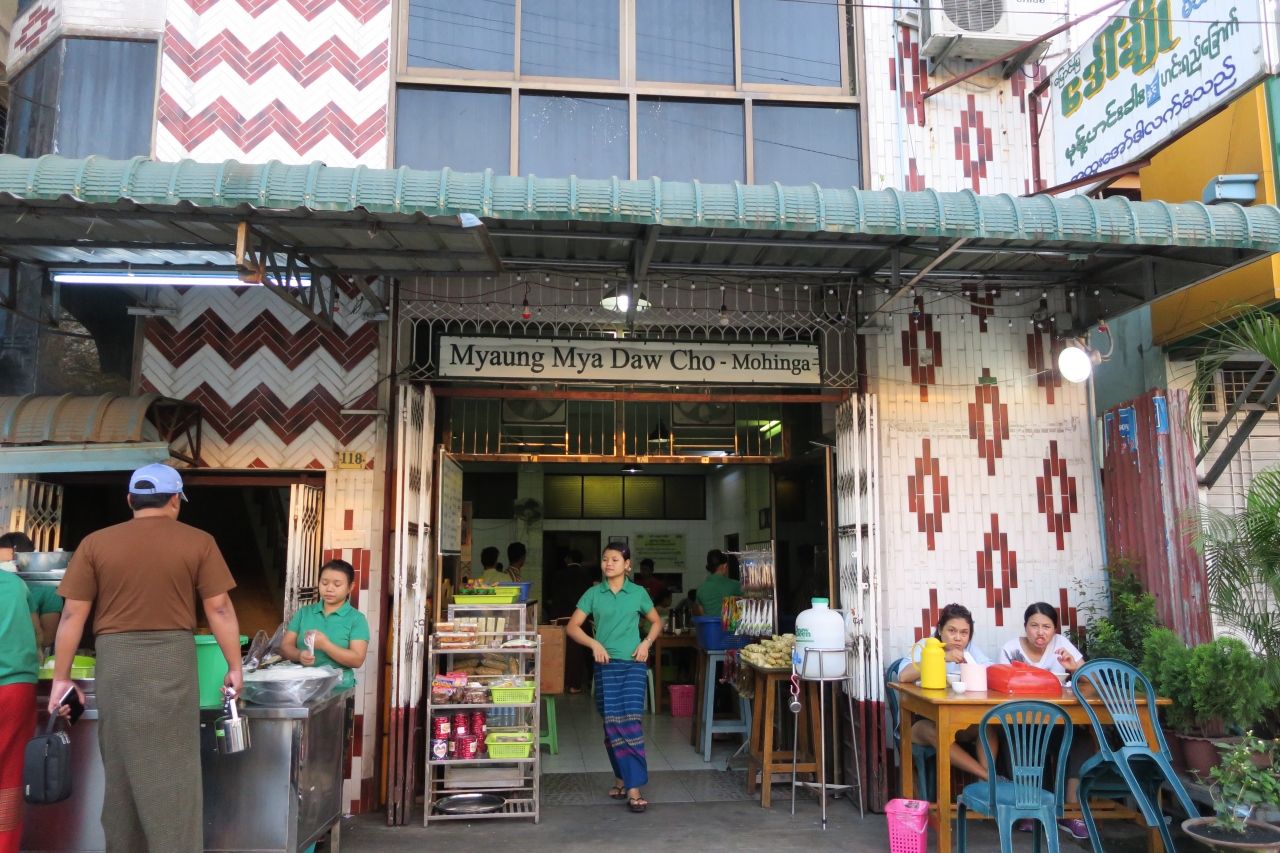 日本のガイドブックにも載っていますが場所がわかりにくいのでタクシーで行くのがおすすめです.完全に地元の人向けのお店ですが,中に入って「モヒンガー」といえば持ってきてくれ,さっぱりしたおいしいモヒンガーをいただくことができました.