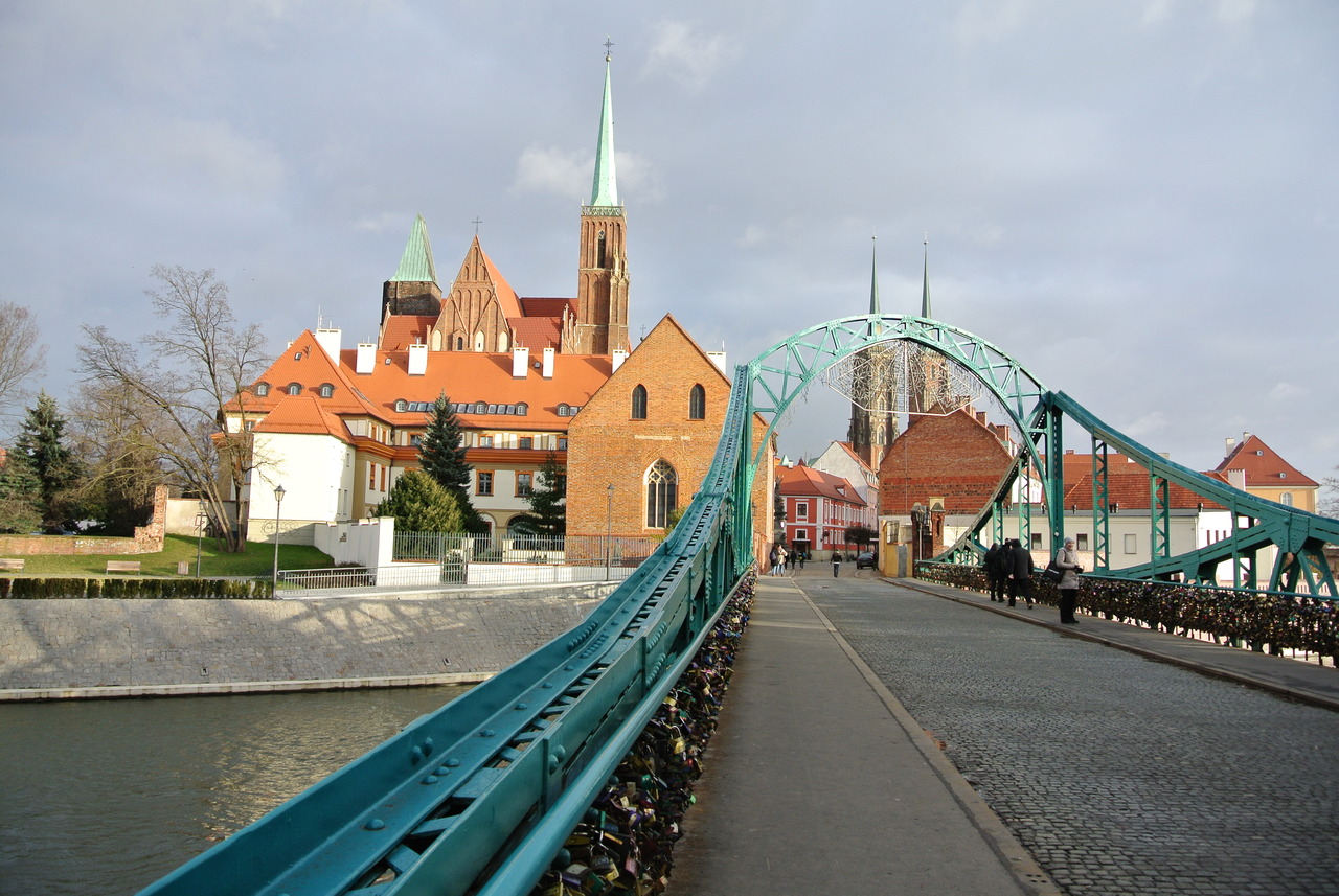 オドラ川の北側、オストルフ・トゥムスキへ渡る橋です。愛の橋と呼ばれてるのですが、橋の両側が南京錠でとにかくびっしり埋め尽くされていてびっくりしました。本来ロマンチックなものなのでしょうけれど、そういった情緒あるものには見えなくなってしまってました。