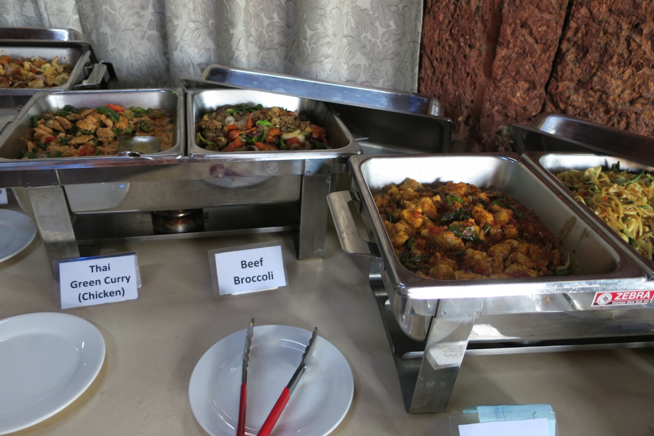 料理はミャンマー料理が中心で、さほど多くの種類があるわけではありませんが、おいしいし、パパイヤ、スイカもありました。