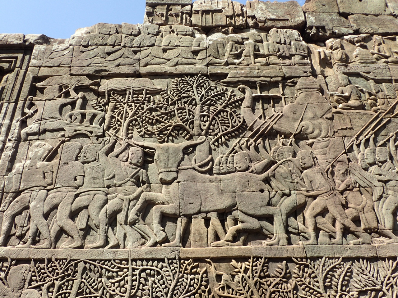 ツアーで行きました。総面積は900ヘクタールで東京ドーム60数個の広さがあり、とても一回では十分には見られません。観光客がたくさん来ているので、写真を撮るのも大変でした。メインゲイトの南大門にも観世音菩薩の四面仏塔があり、上部テラスにも大小16もの仏塔があり素晴らしい景色です。第一回廊のレリーフや象のテラスも必見です。