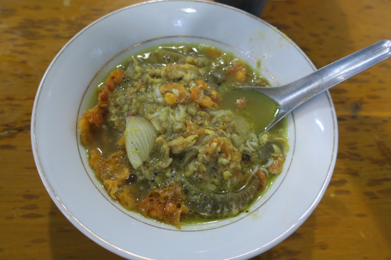 ミャンマー名物のモヒンガーを食べておこうと行ってきました。事前にホテルフロントでミャンマー文字でお店の名前を書いてもらい、それをタクシーで見せました。お店での注文の仕方がわからなかったのですが、お姉さんに「two モヒンガー」で通じました。テーブルに座っていると持ってきてくれます。支払いはお姉さんが側を通ったときに渡しました。1杯700チャット。トッピングもできたようです。