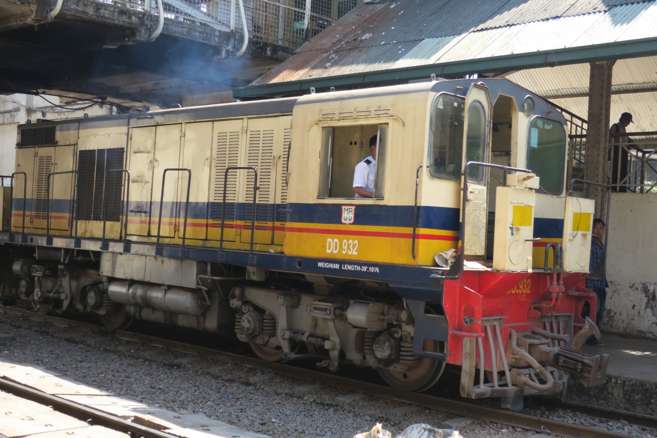 ガイドさんに案内してもらい、ホームまで入っていきました。結構混雑しており、道路が込み合っているので電車を利用する人が多いそうです。構内はビルマ語表記がほとんどで、数字もビルマ語数字。ガイドなしで電車に乗るのは難しそうです。