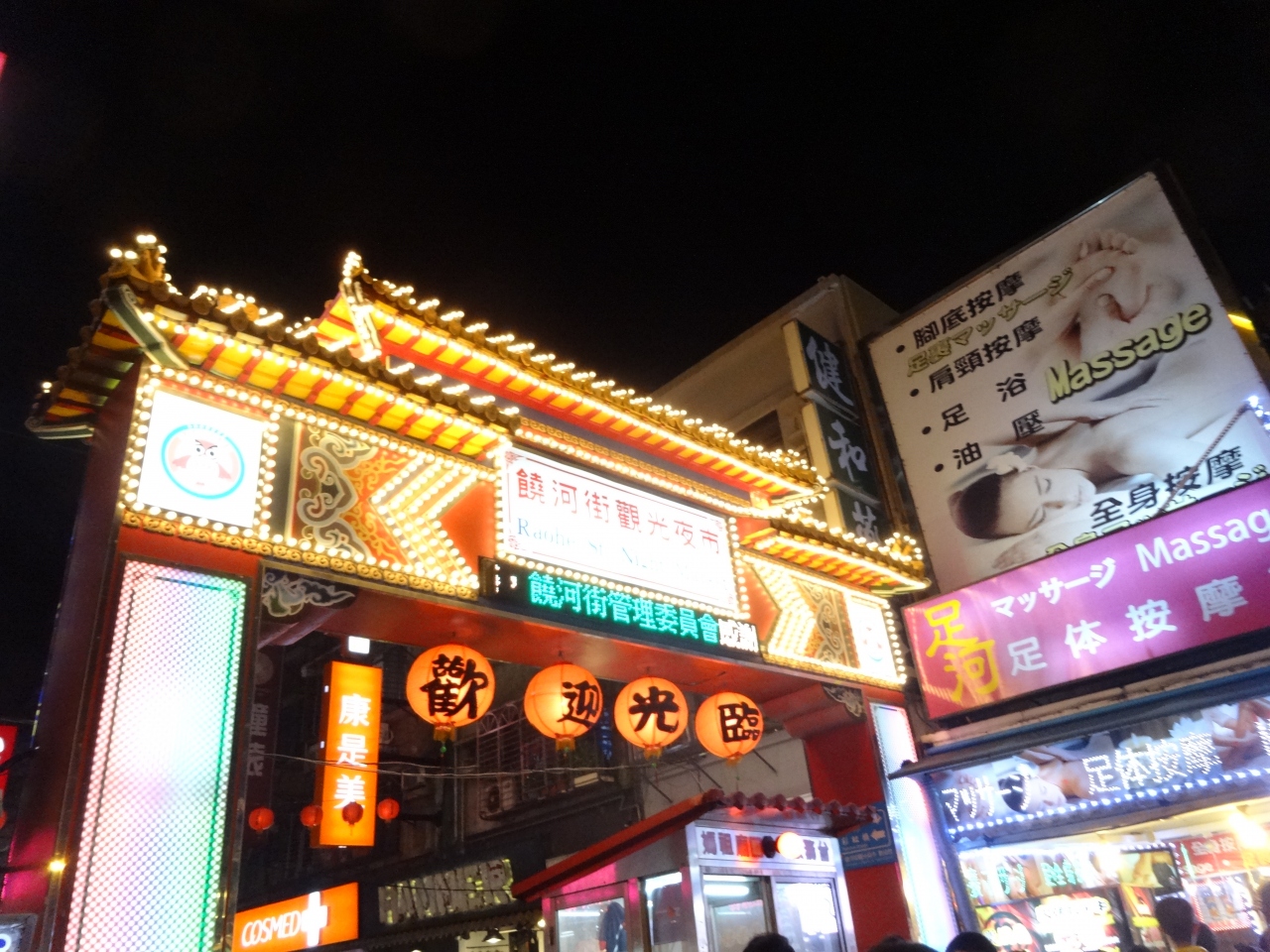 MRT松山駅の地上出口から徒歩数分で、電飾が綺麗な夜市の門に到着します。