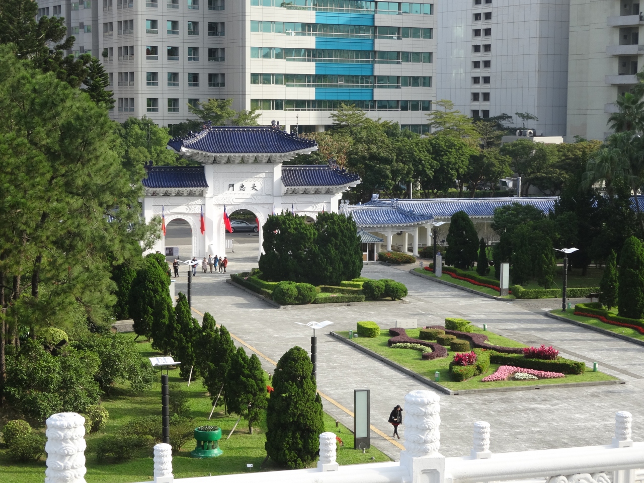 MRT中正紀念堂駅から徒歩数分の近さです。紀念堂敷地の側面にも門があり、これらの門からも敷地内に入ることができますが、正面に回って、正門から紀念堂を見るのがお勧めです。