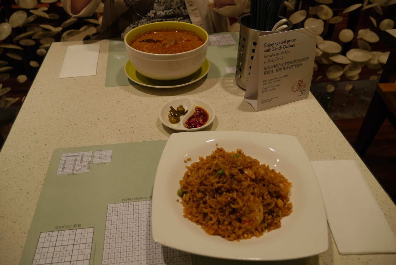 マリーナベイサンズのカジノフロアー一番下の階にある麺類のお店です。ラクサとXO炒飯を頂きましたが、ラクサは大変辛く、汗が吹き出し、短めの麺は食べにくかったです。炒飯にはおこげ?なのか骨のかけらなのかわからない硬い粒がところどころ入っていて美味しさは感じませんでした。
