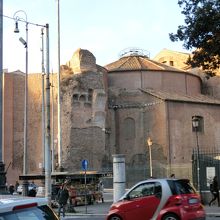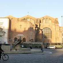 この教会は浴場のバジリカの跡地に建てられたもので、入り口は当時の浴場の壁をそのまま利用した造りになっているとのこと。