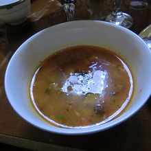 ウズベキスタン風のボルシチですがちょっと塩辛い。