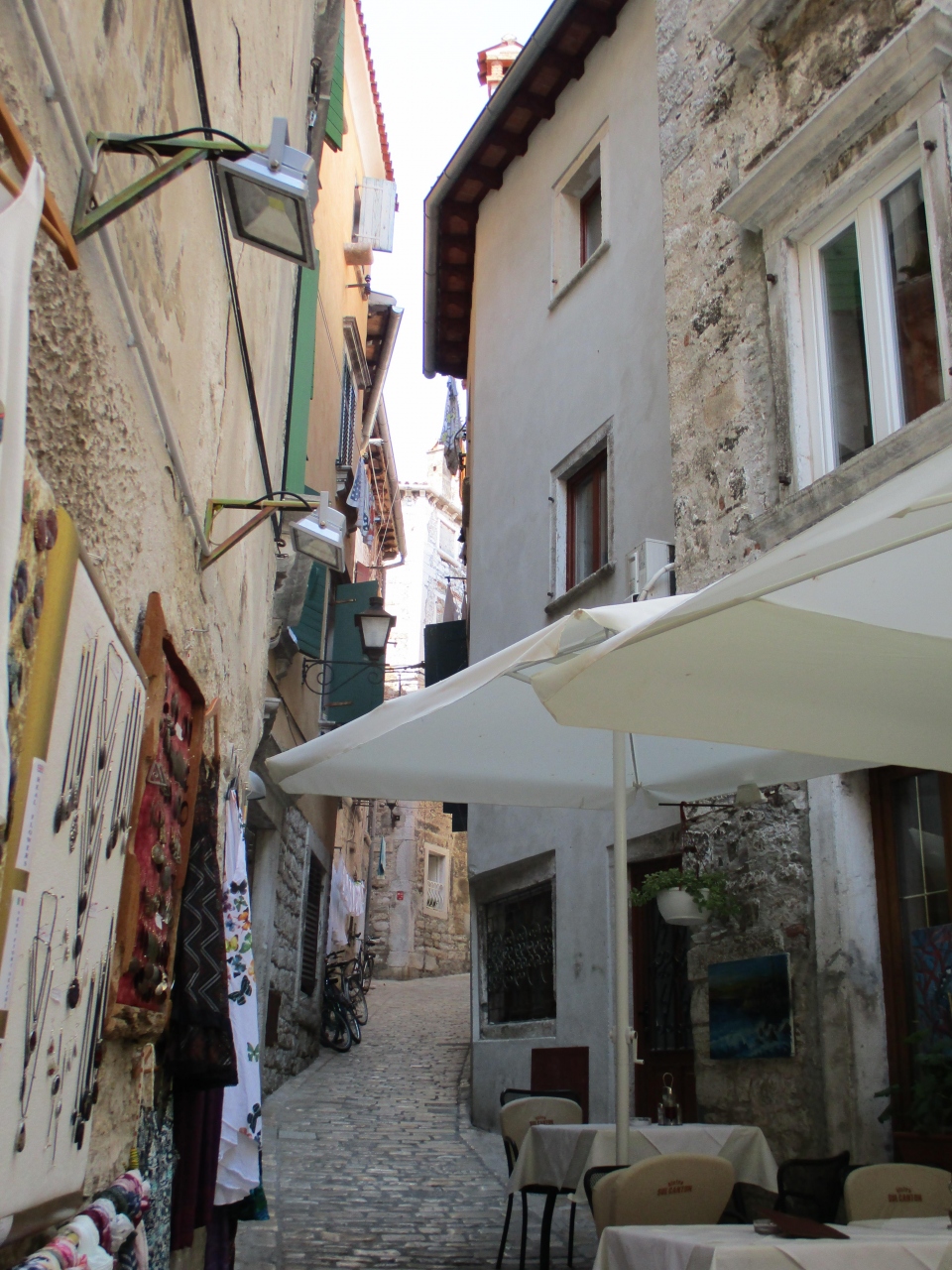 聖エウフェミヤ教会に登っていく参道です。狭い道ですが、周りの家はれんがの古い感じの家で、変化に富んだ散策に楽しい通りで、上り坂の苦しさは全く感じませんでした。この坂を上り切って教会の塔にも上りましょう。息を飲む美しさです。