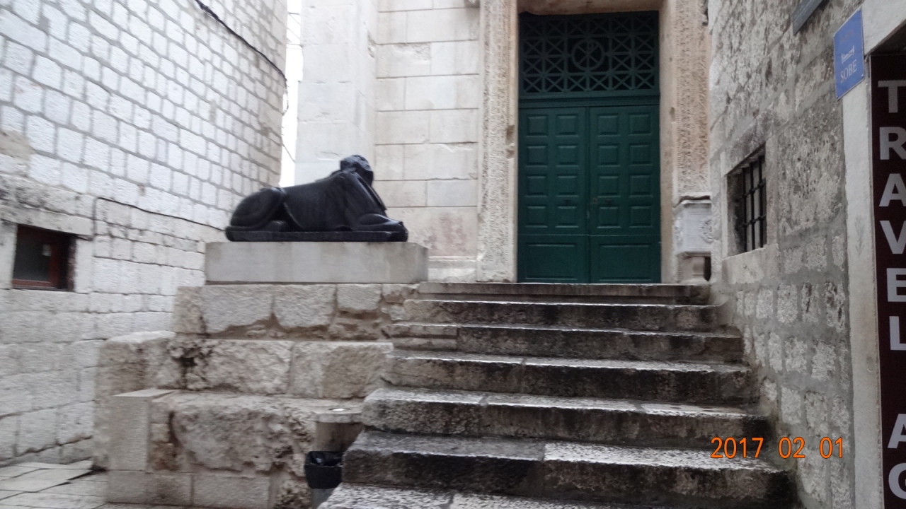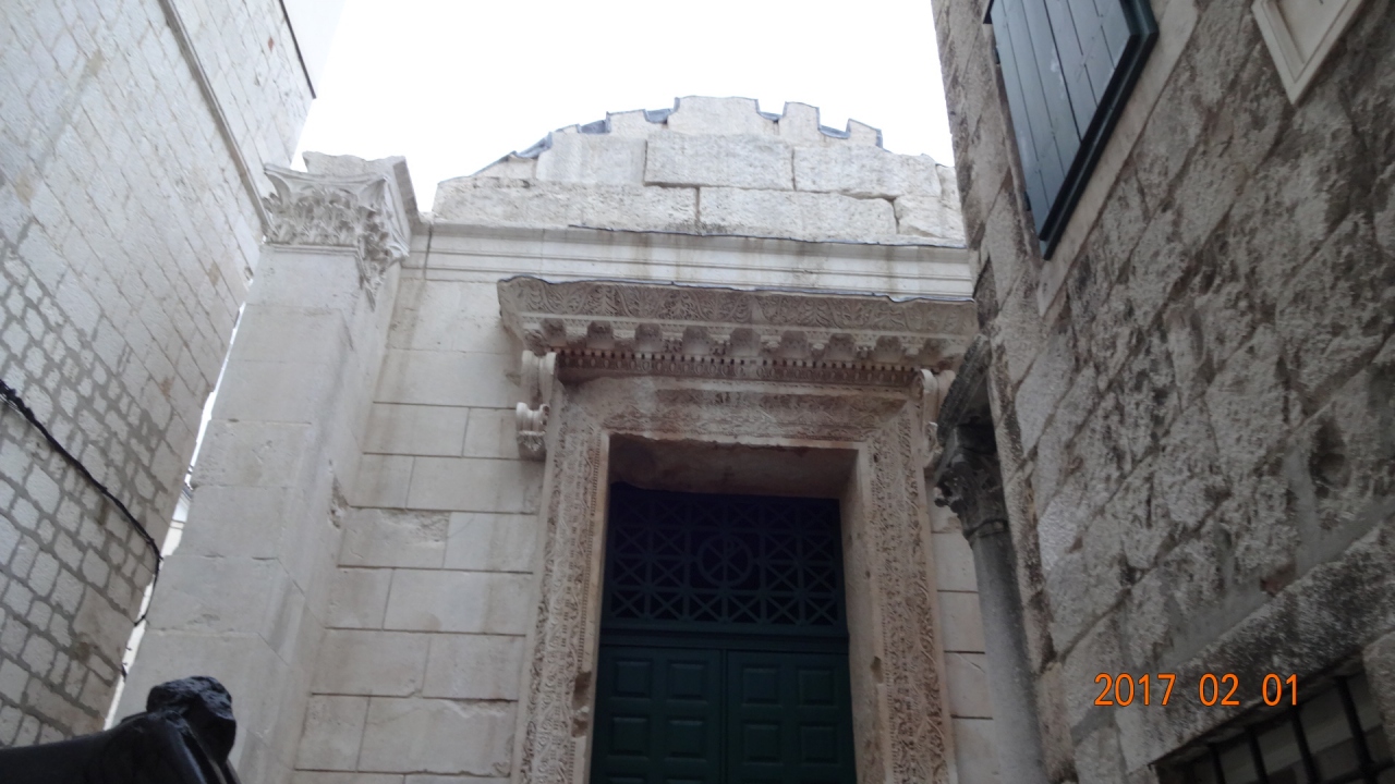 大聖堂前のペリスティルの西側にある細い路地(天井部分が工事中)を通り抜けると、突き当りにあります。