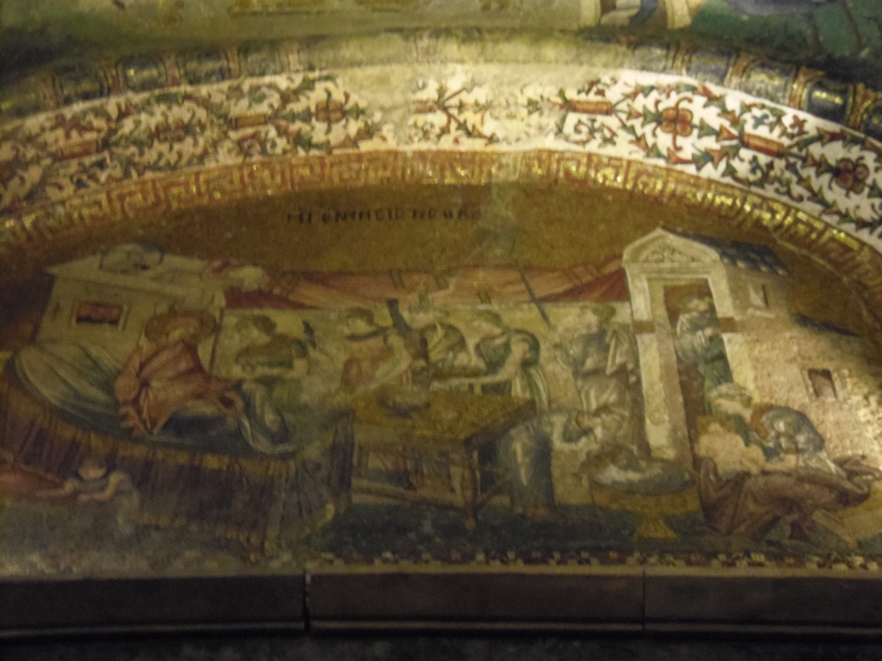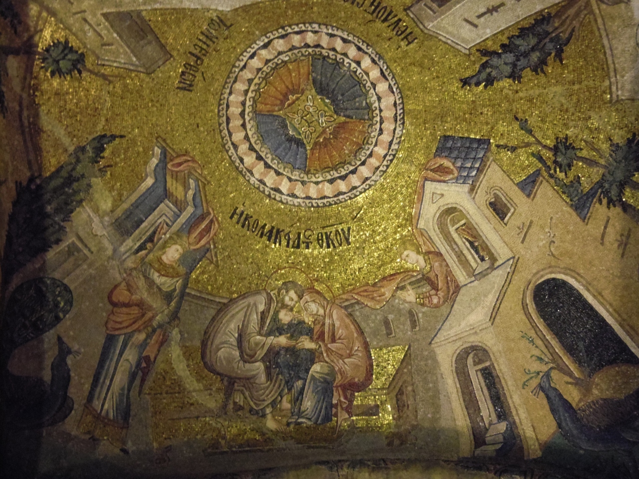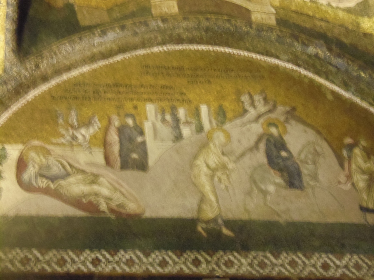 もともとはギリシャ正教の修道院として7世紀に建築されたものを、オスマントルコがイスタンブールを征服してジャミーに変えた。漆喰が塗られていて、建物の中は暗い。しかし、壁面にモザイクとフレスコ画は残っていた。痛々しい感じがした。