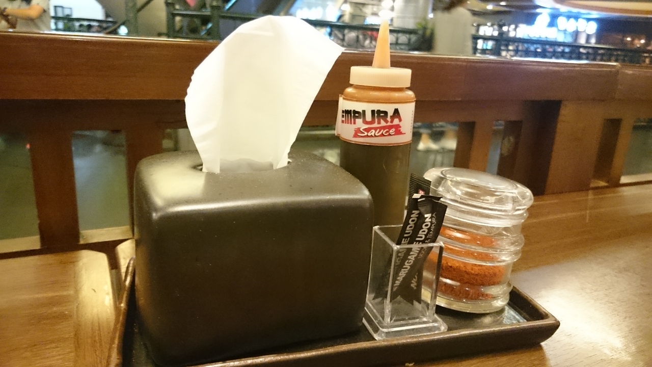 グランドインドネシアの5階のレストラン街にあり、いつも混雑。日本のおなじみメニューがメインですが、丼ものが充実しているほか、スパイシーパイタン鶏ウドンという独自メニューなどもある。スパイシーパイタン鶏ウドンは、「南国のうどん!」というイメージで、スパイシーな辛さとコシのあるうどんが絶妙なタッグを組んでいる。店員さんはもちろん現地の方ですが、作り方は日本と変わらず安心。天ぷらは日本でおなじみのエビ天、玉子天、ちくわ天、かき揚げなどほかに、豆腐の天ぷらがあり。豆腐の天ぷらは、日本でもうけるのではないかという感じで、厚揚げに似ていました。天ぷらソースがおいてありましまが、とんかつソースに近い味でした。