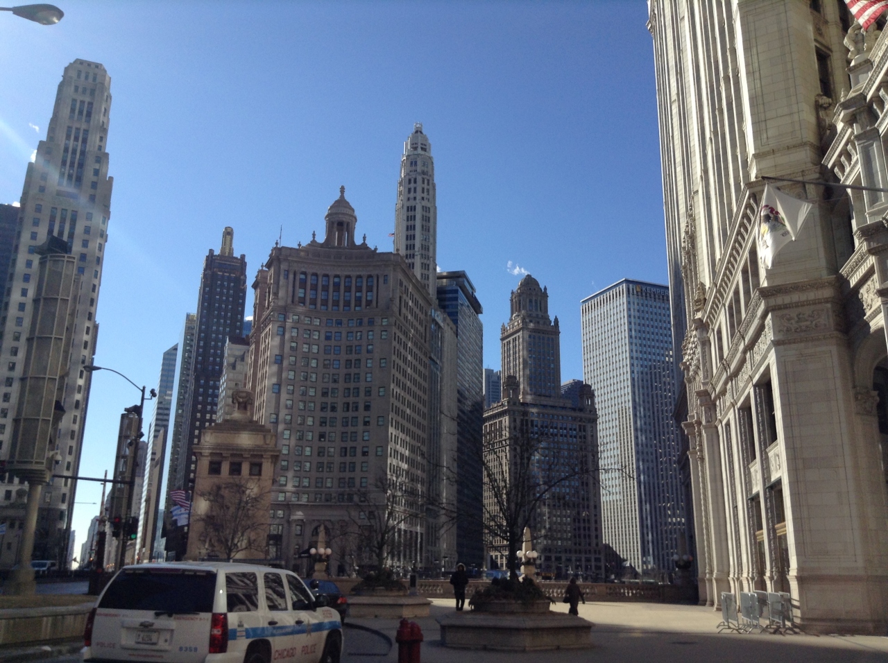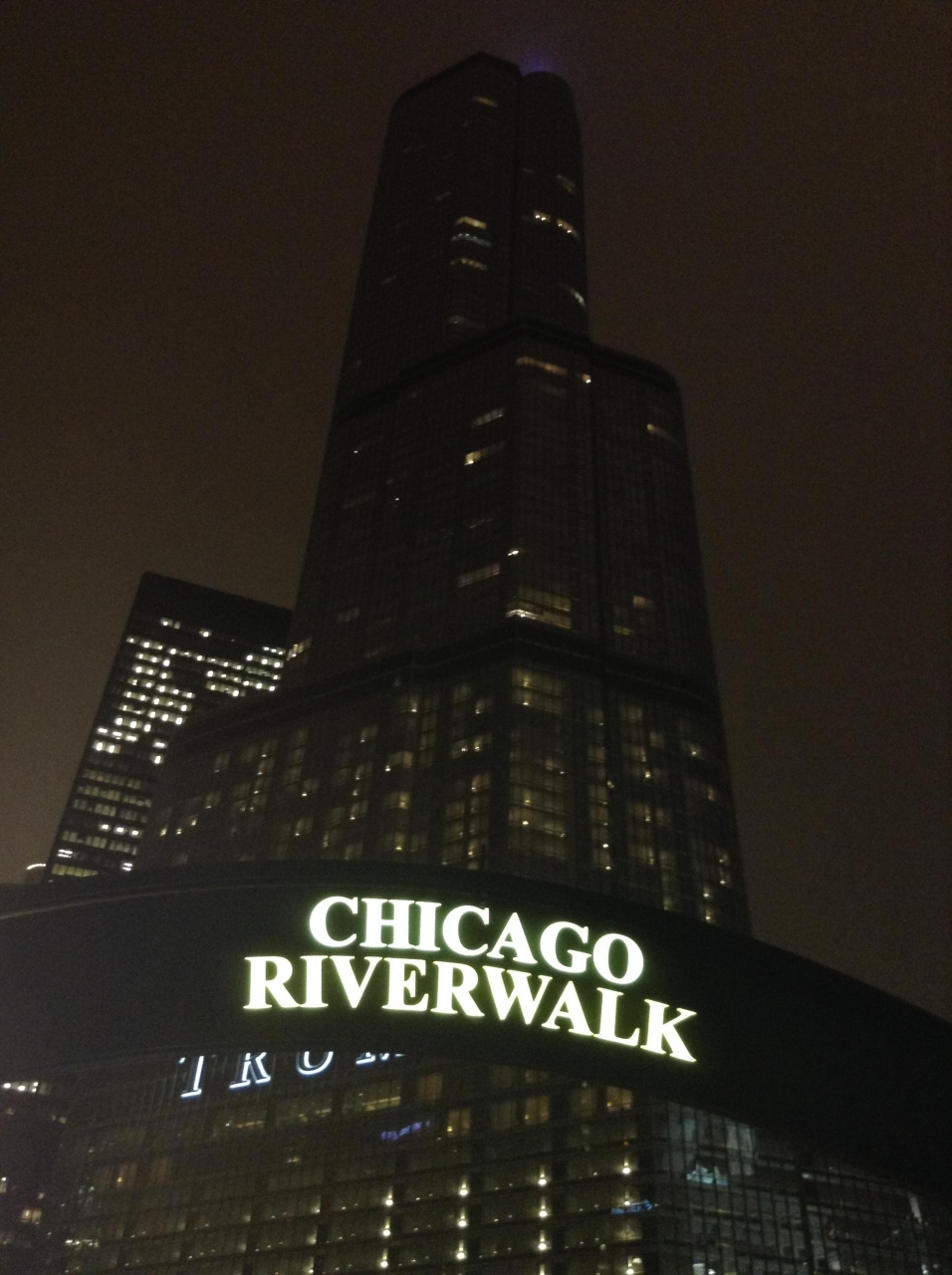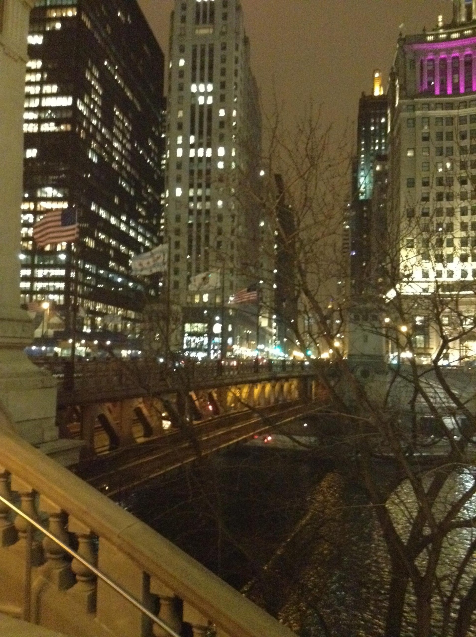 寒いこの時期は川沿いのお散歩しか楽しめません。ADA(障害者の方も楽しめるように)ように一部スロープがある場所もあります。夏期だと、リバークルーズが楽しめます。ミシガン湖から流れています。夜は建物のライトアップがきれいでした。
