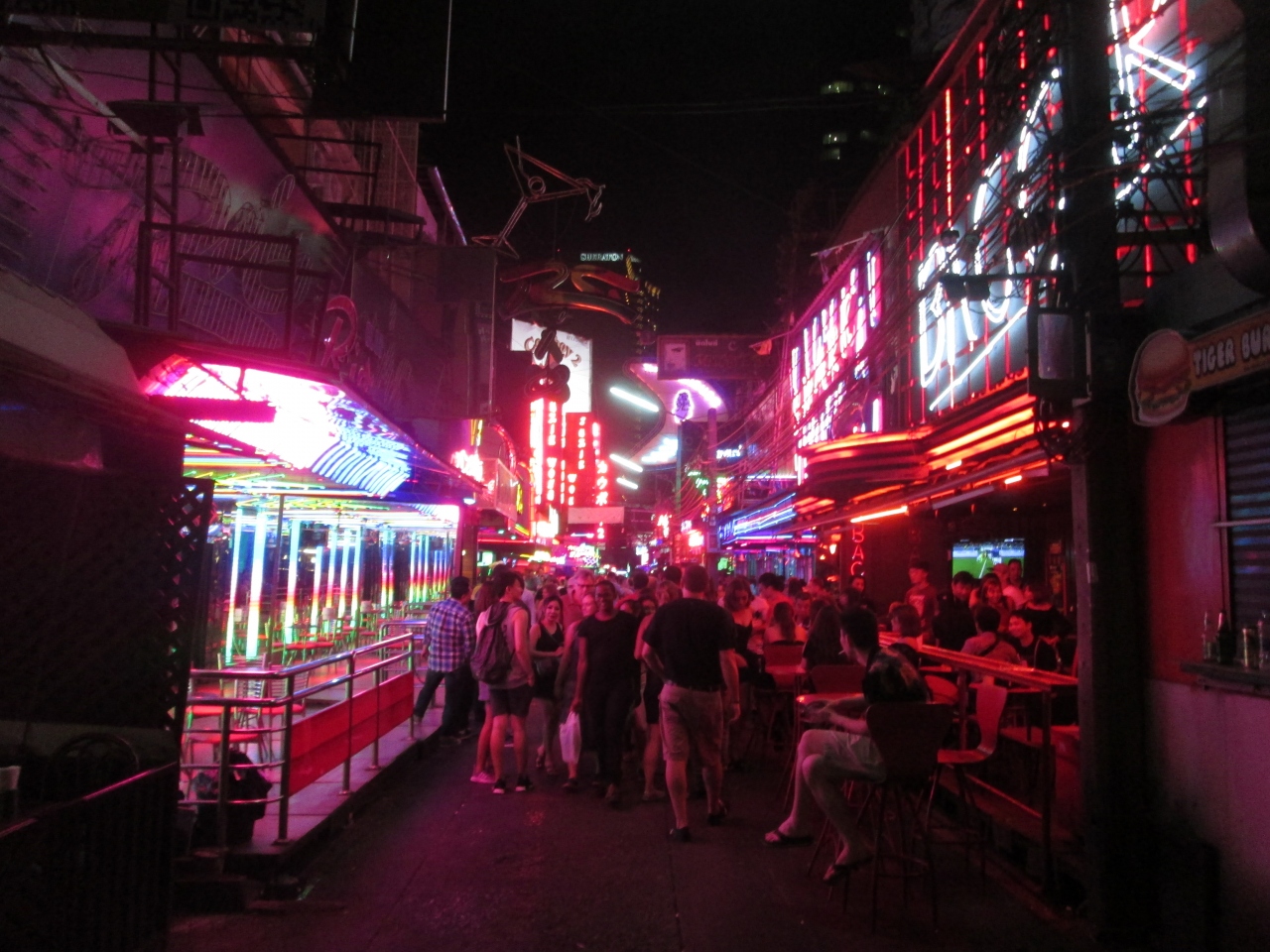 2月11日はマカブーチャ(万仏節)というアルコール販売禁止日で、看板の照明は控えめになっており、ソイカウボーイにあるバーは半分程度の営業でした。営業しているお店は深夜2時から3時頃までオープンしていました。禁酒日に酒類の販売をすると罰金と言われていましたが、2/11は微妙な日にあたるようでした。