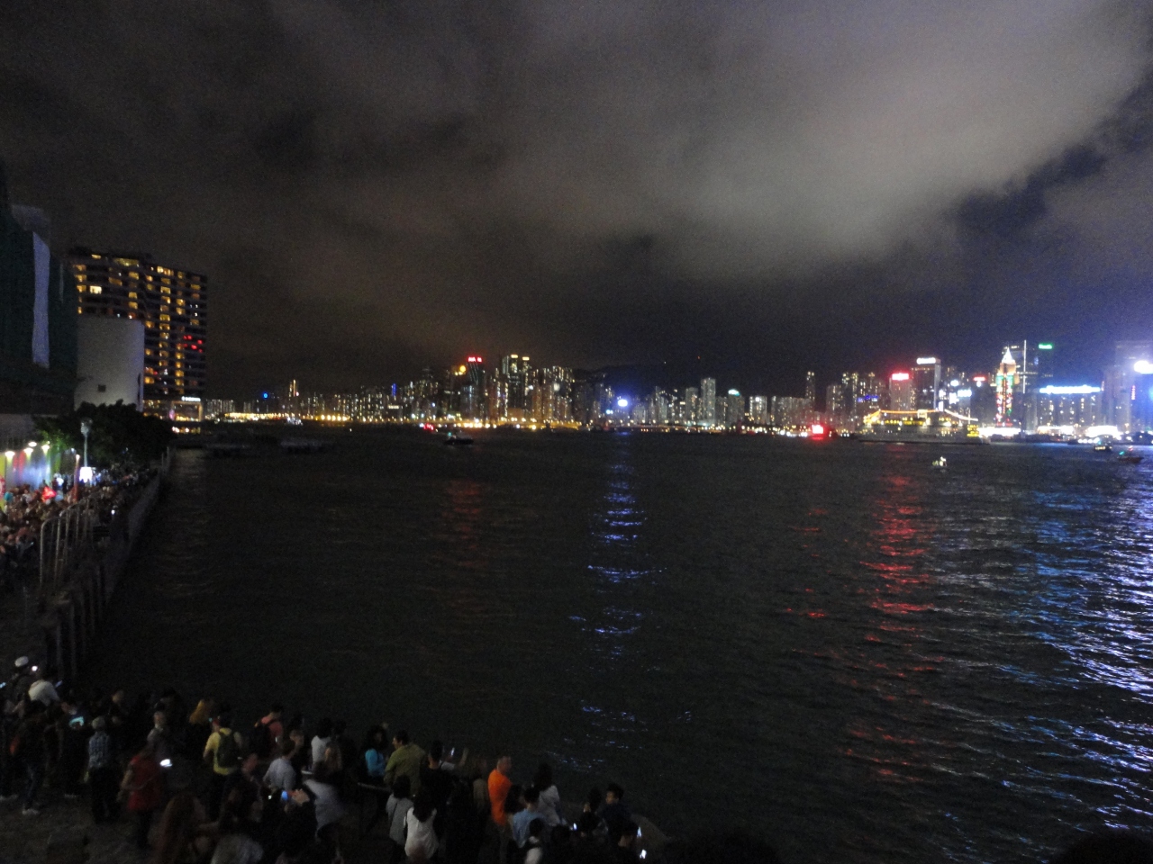 単刀直入に言って、迫力が足りません。光線は弱々しくミュージックも小さめで、いつから始まっているのかよくわかりません。アナウンスを入れてショーの演出を盛り上げるような工夫が必要だと思います。海の上を行く遊覧船の照明のほうが派手にみえるくらいです。香港島のビル群は素晴らしいですが、何か興ざめという感じがしてなりません。なぜこのショーのためにこんなに大勢の観光客が陣取るのか理解できなかったです。