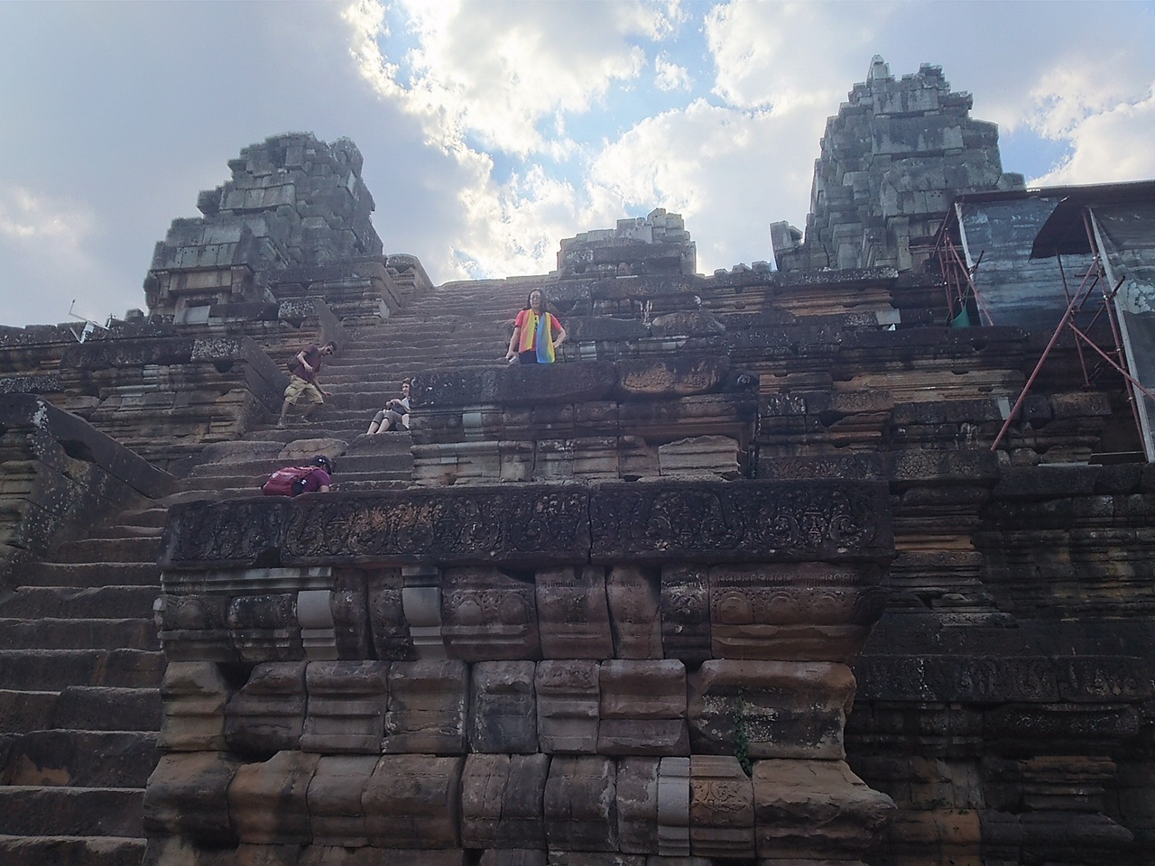 ピラミッド型の寺院は正面に長い長い階段がそびえます。楽じゃない!